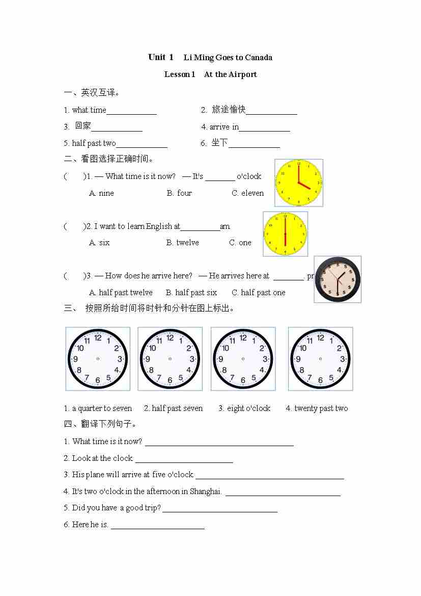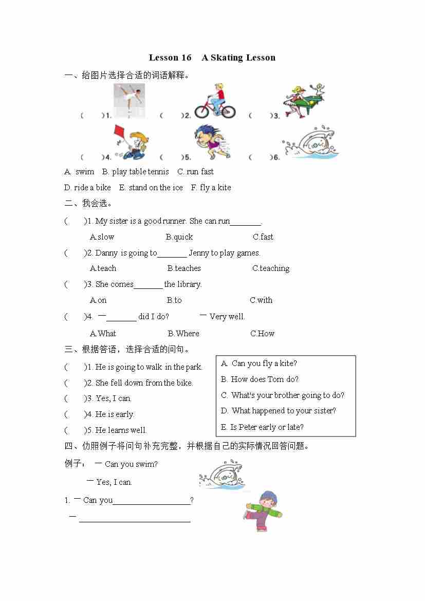 (三起)冀教版六年级英语上册Lesson 24练习题及答案