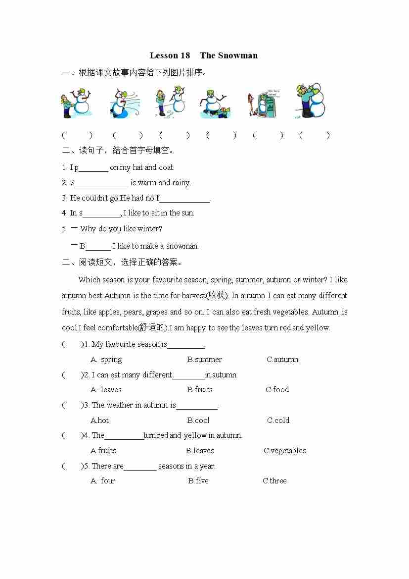 (三起)冀教版六年级英语上册Lesson19练习题及答案