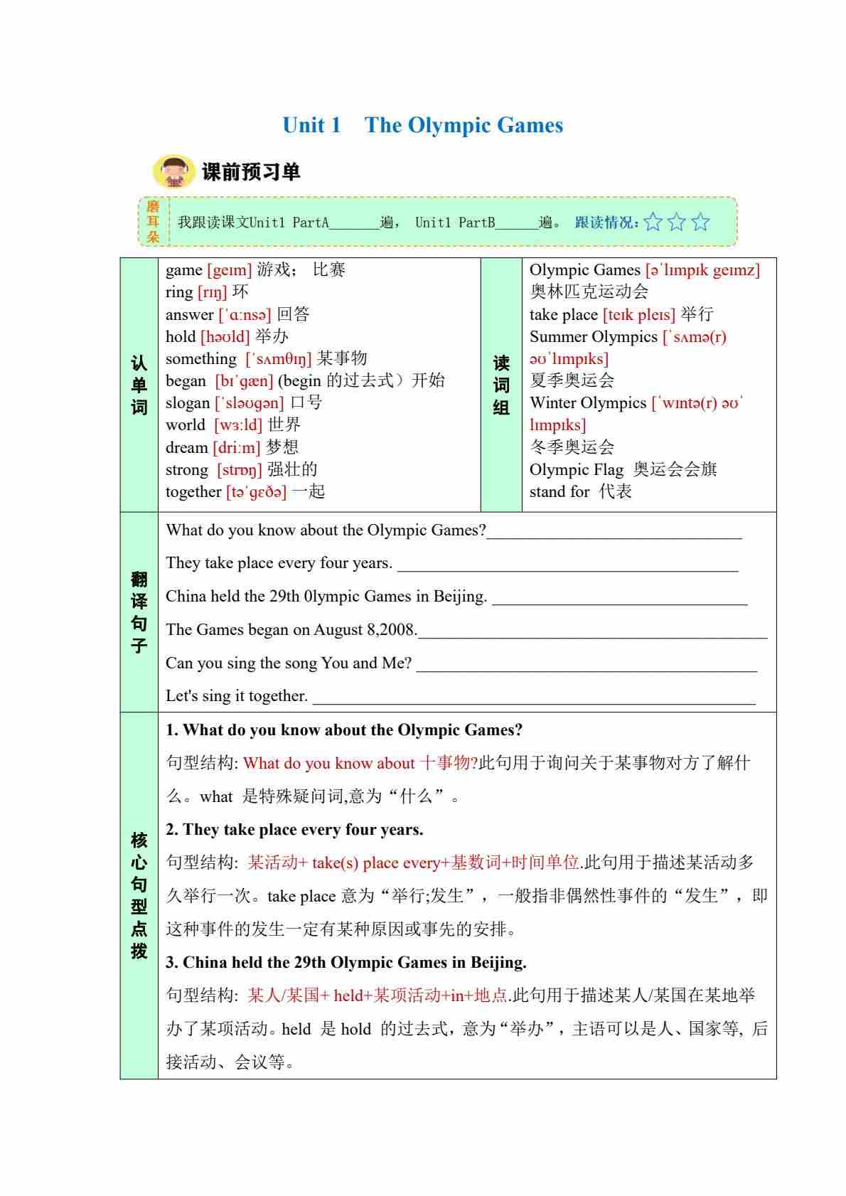 闽教版英语五年级暑假作业(五升六预习单) (1)788