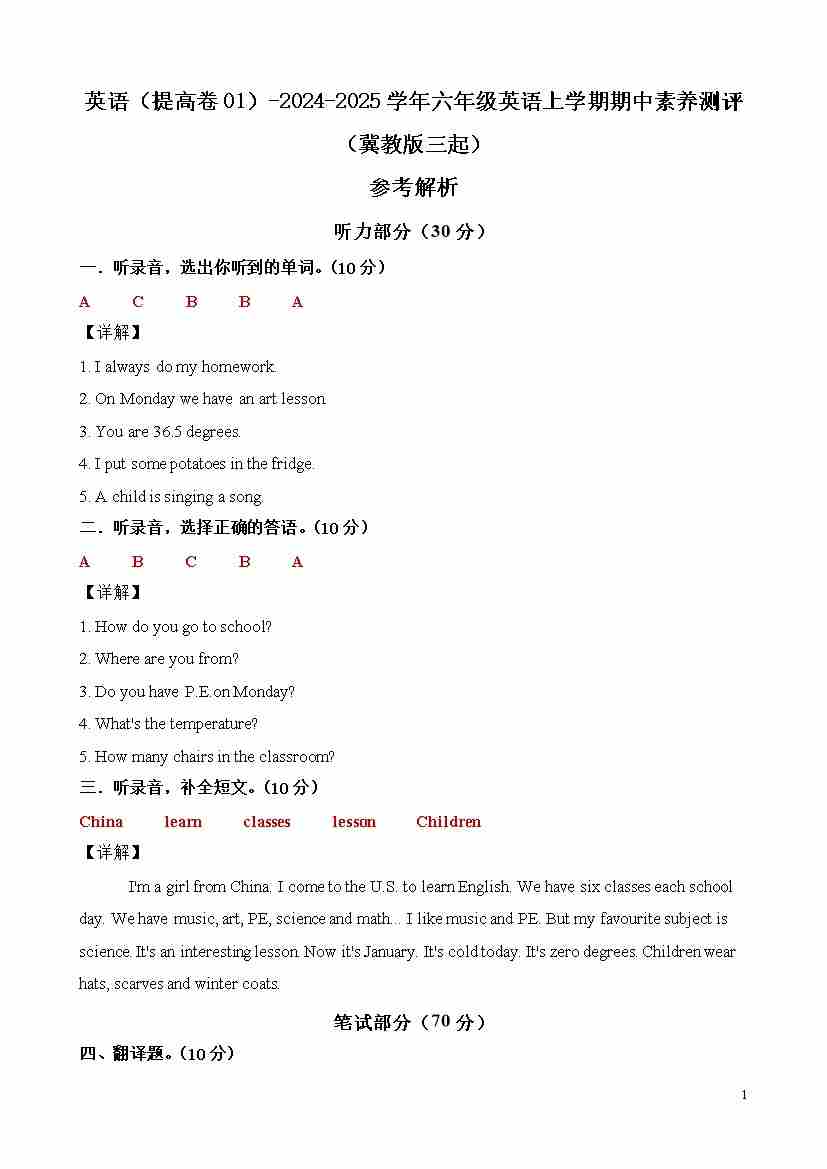 四(上)数学【青岛63版】试卷《名师面对面》QD63打印版