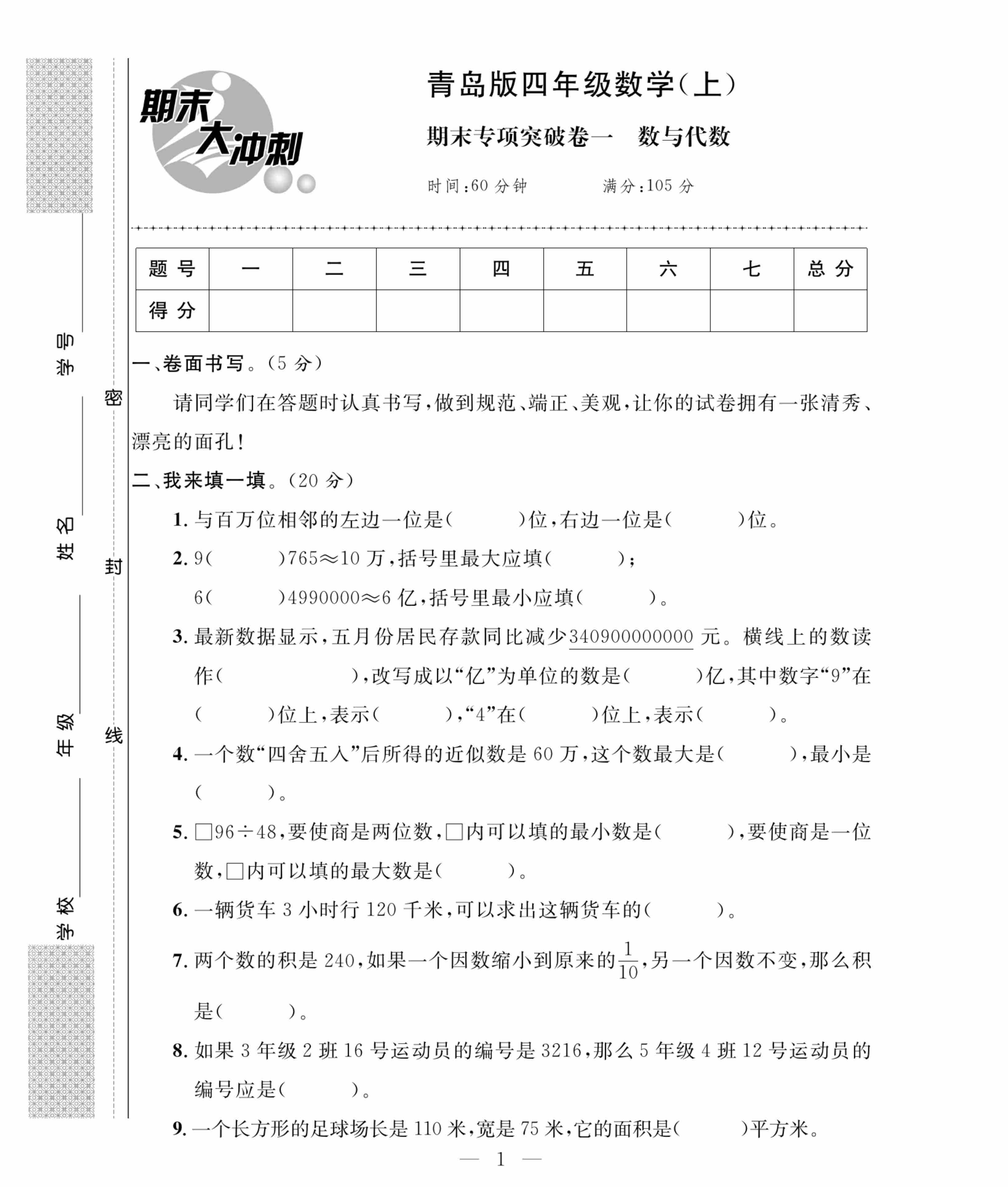 四(上)数学【青岛63版】试卷《单元冲刺卷》QD63打印版