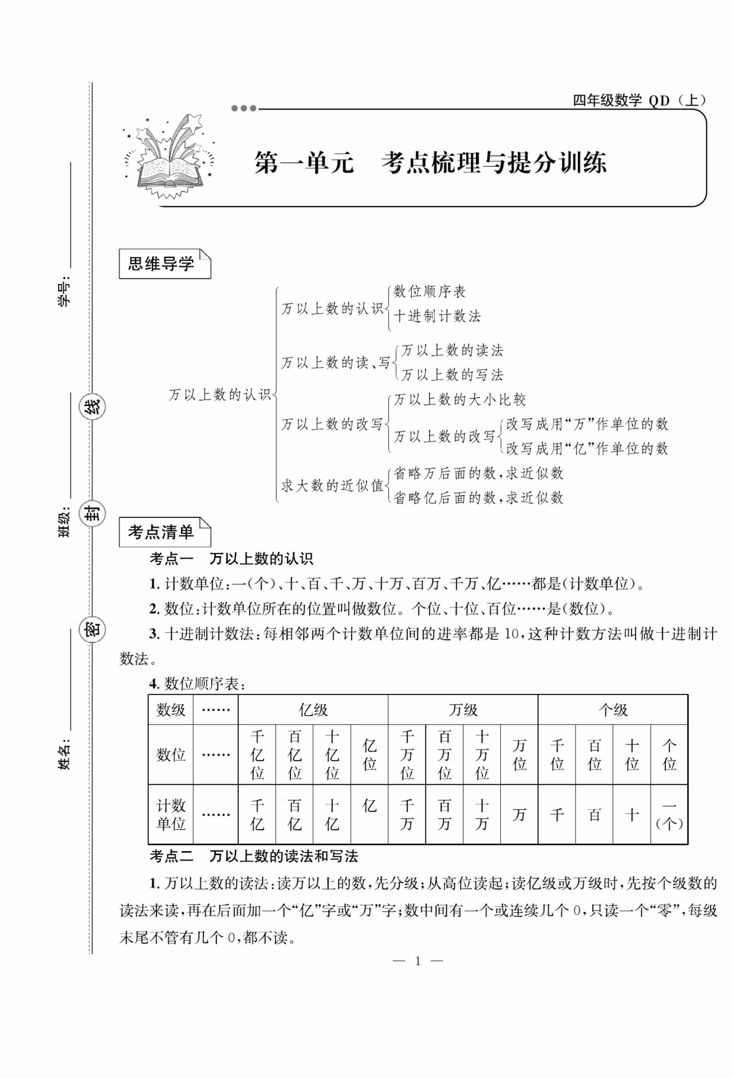 四(上)青岛版数学25秋 四年级青岛63数学上册课时练(QD版) 典中点答案