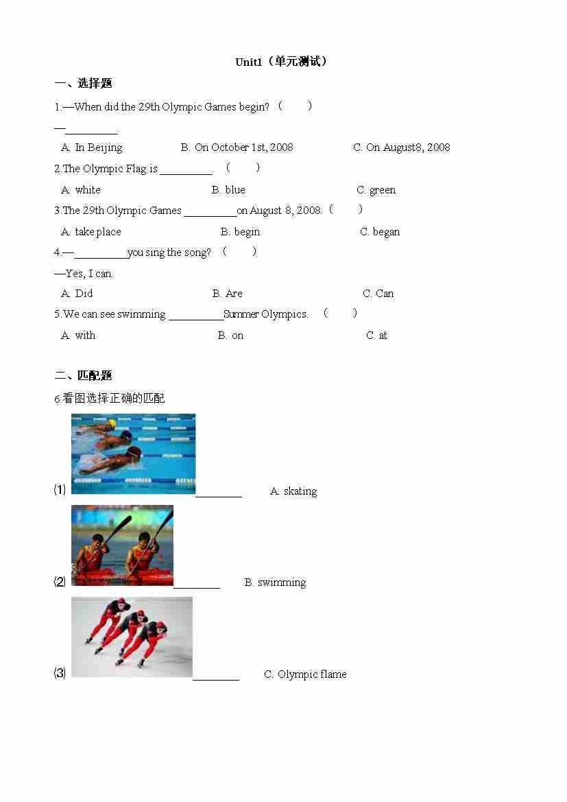 Unit 1 单元测试闽教