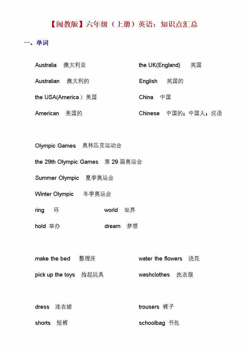 【闽教】六上英语知识点汇总