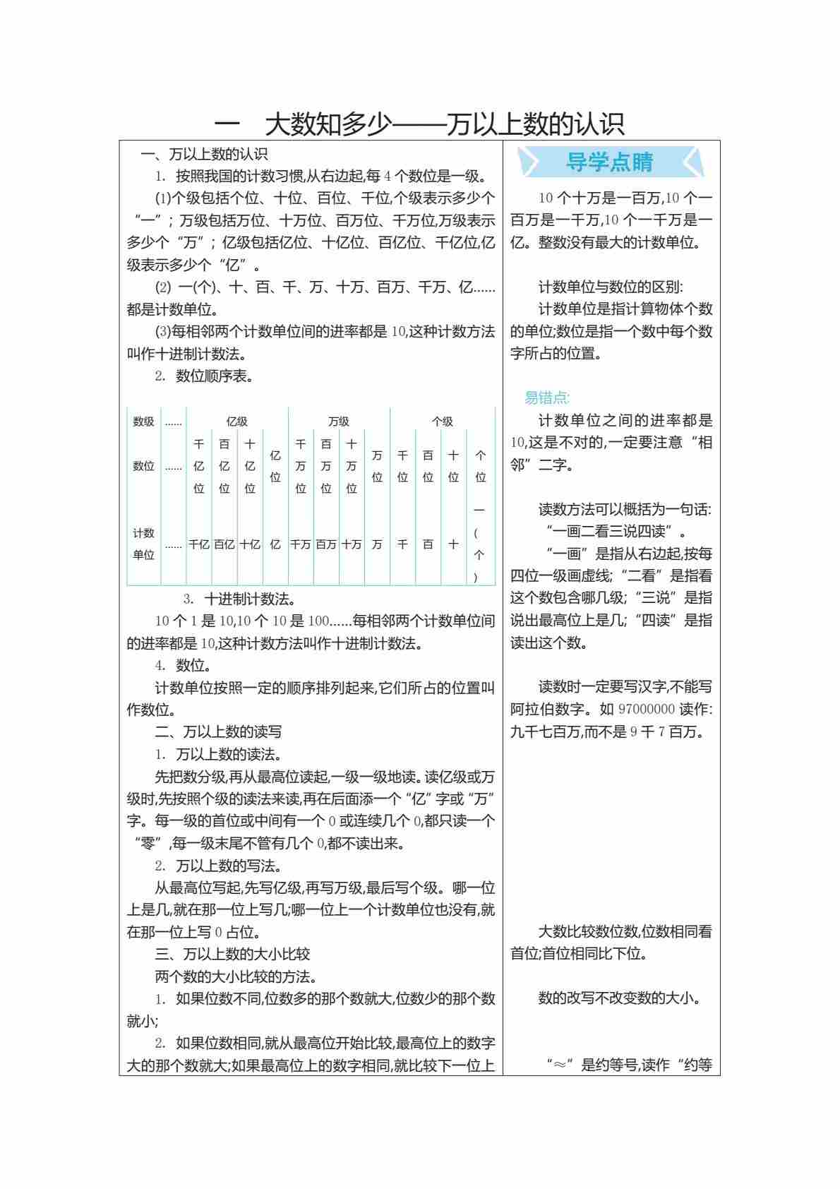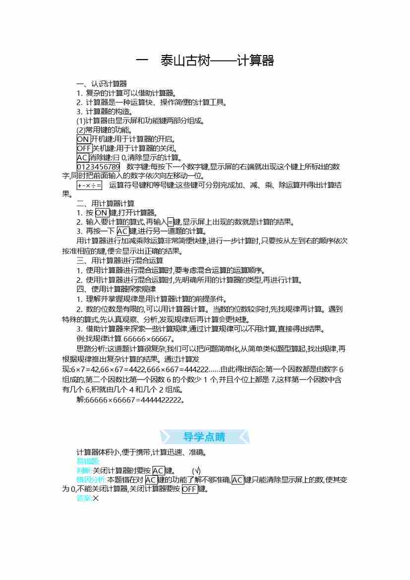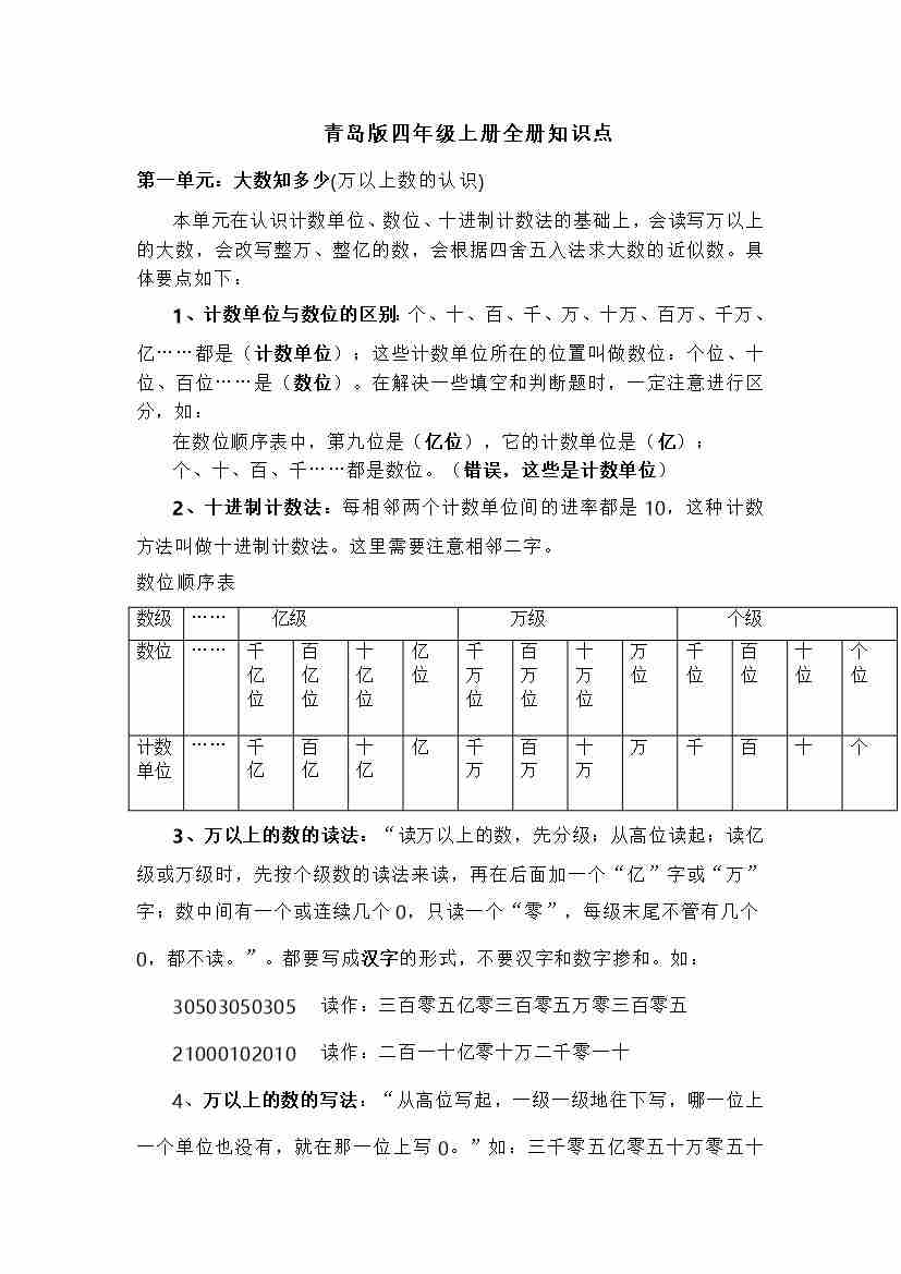 四(上)青岛版数学重点知识点预习