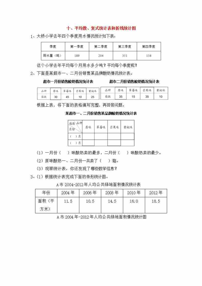 四上丨数学 衔接题-10、平均数、复式统计表和折线统计图(青岛54版)