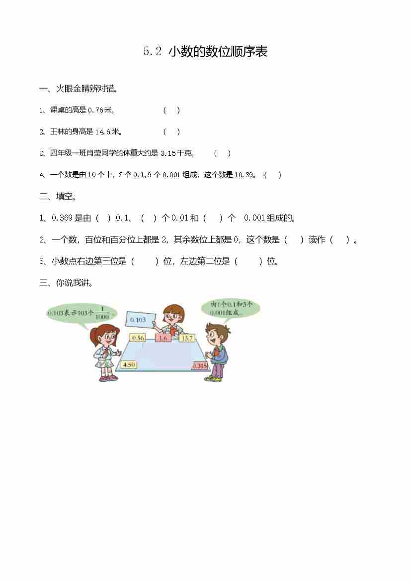 四(上)54制青岛版数学五单元课时5.2 小数的数位顺序表