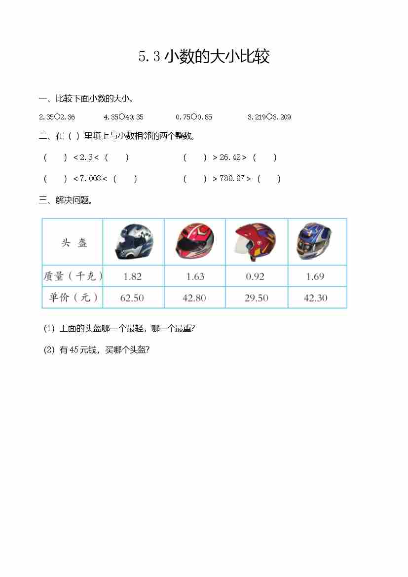 四(上)54制青岛版数学五单元课时5.3 小数的大小比较