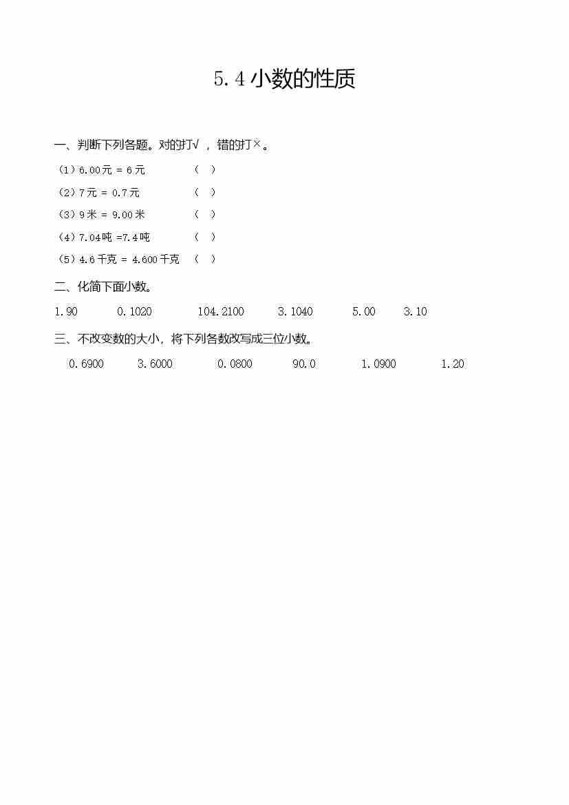 四(上)54制青岛版数学五单元课时5.4 小数的性质