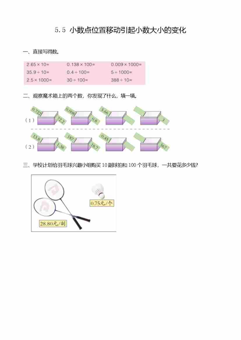 四(上)54制青岛版数学五单元课时5.5 小数点位置移动引起小数大小的变化