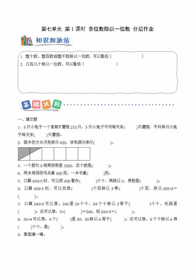 第七单元 第1课时 多位数除以一位数(整十、或几百几十除以一位数)(分层作业)数学青岛版三年级上册(新教材)