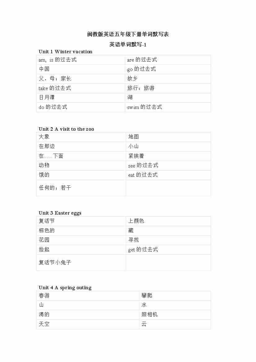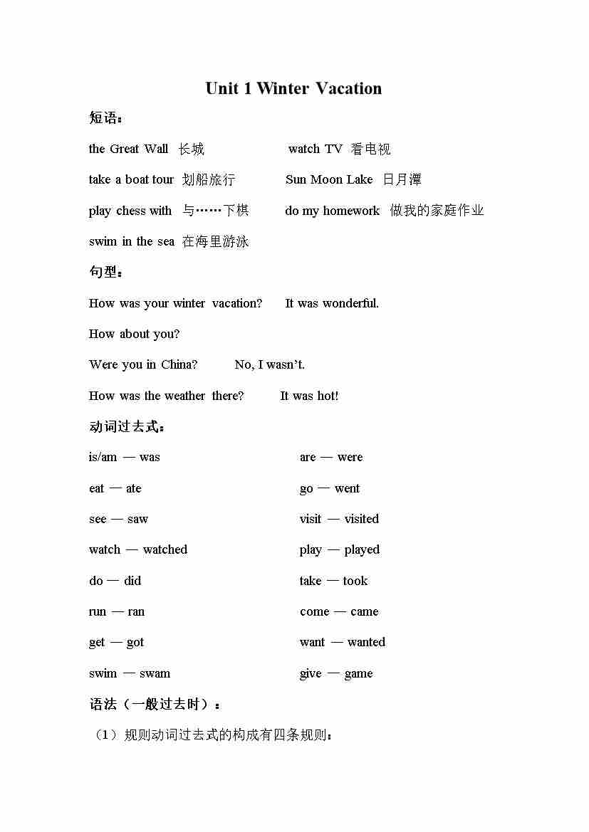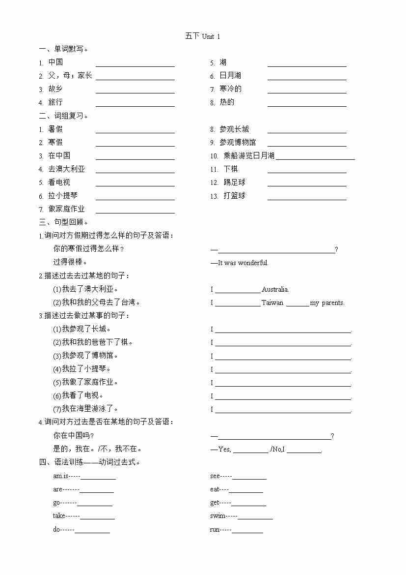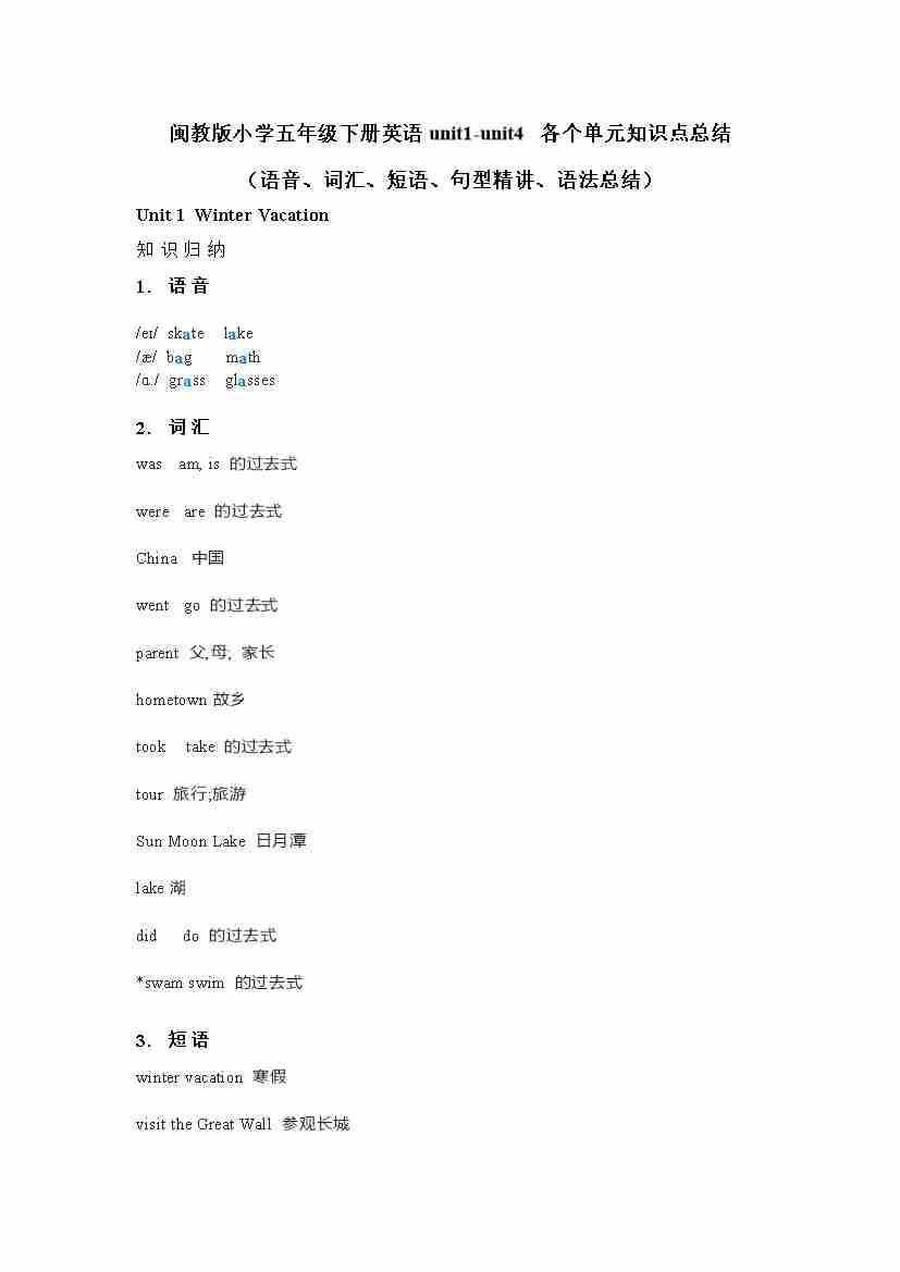 Unit 1 - Unit 4 单元知识点总结(素材)-五级下册英语