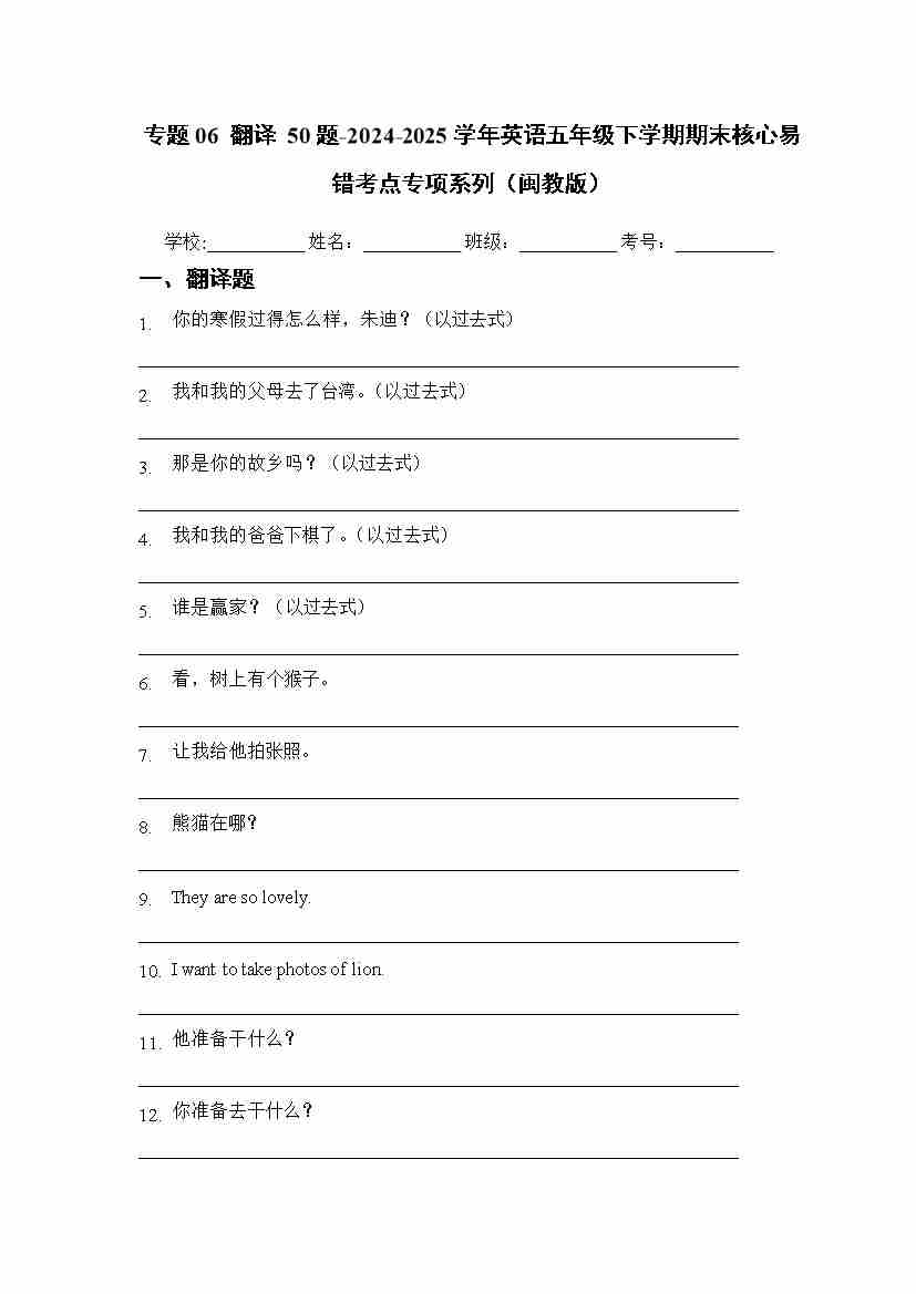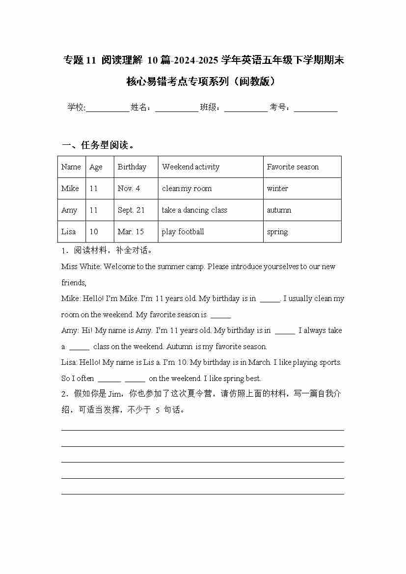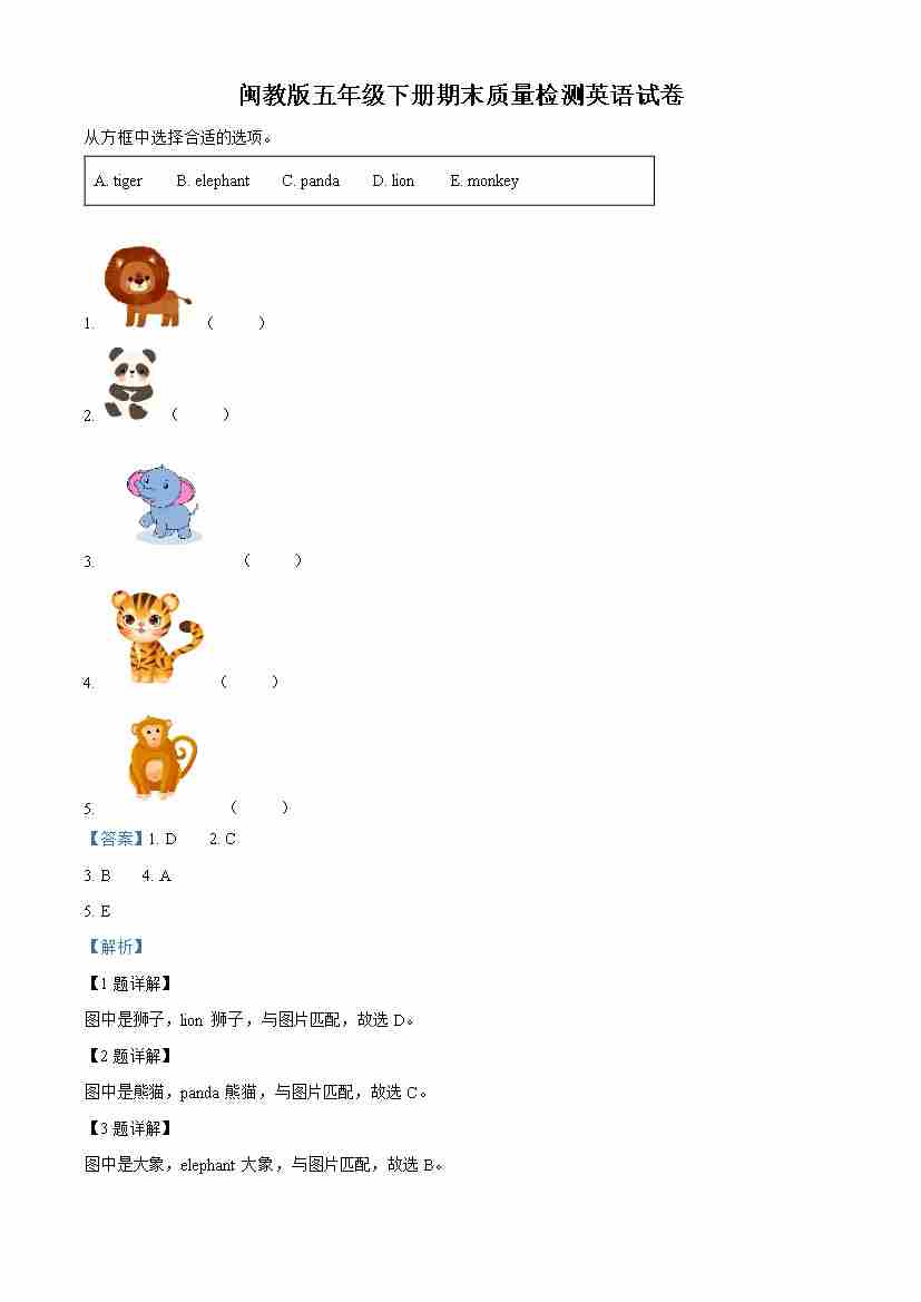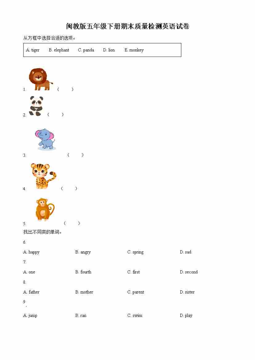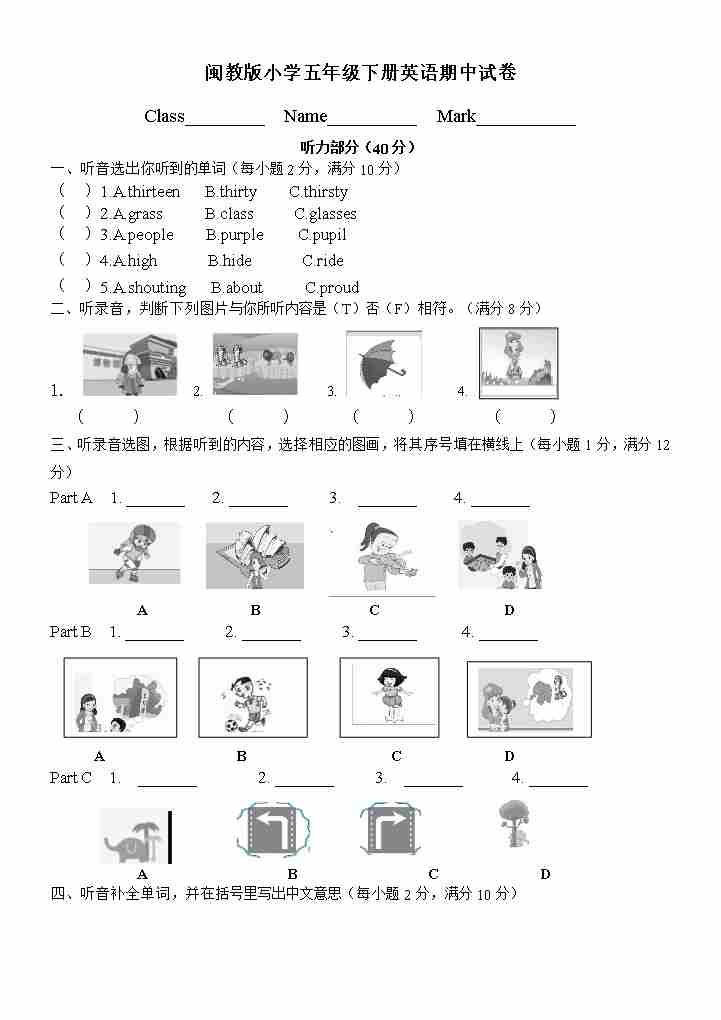 闽教版小学五年级下册英语期中试卷(听力音频)