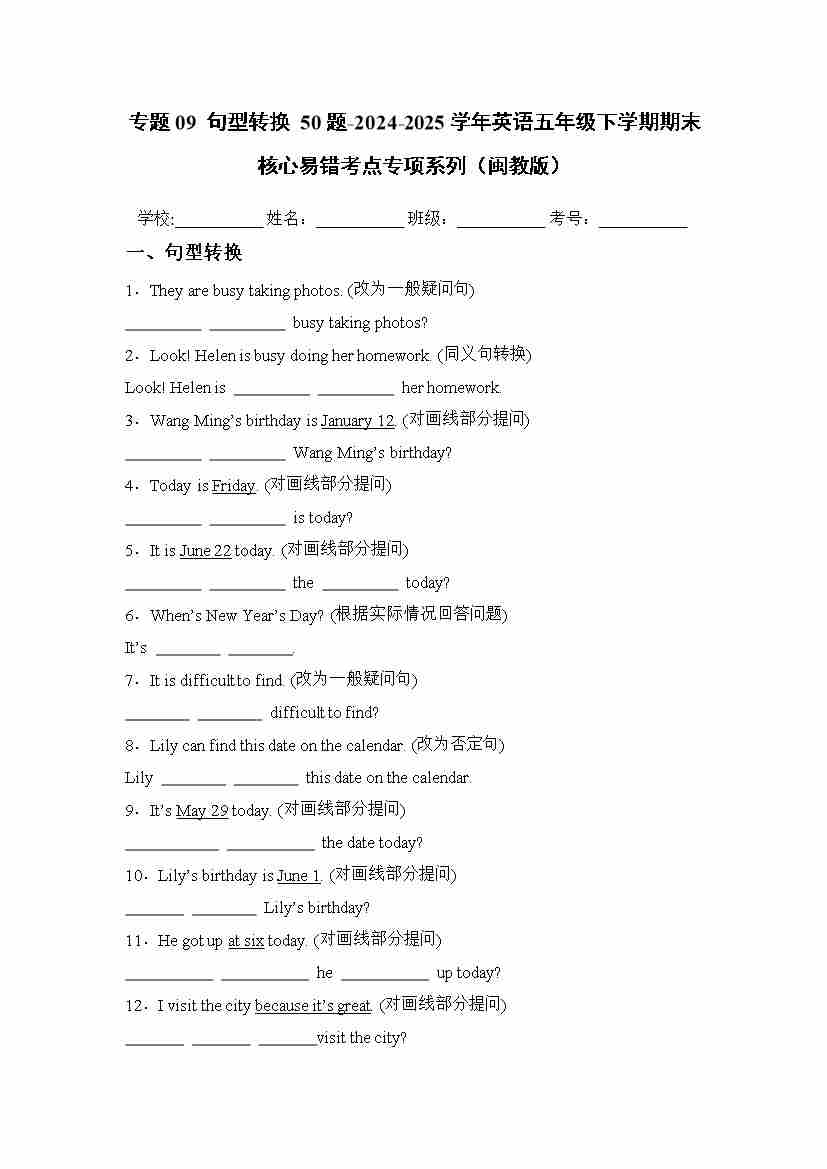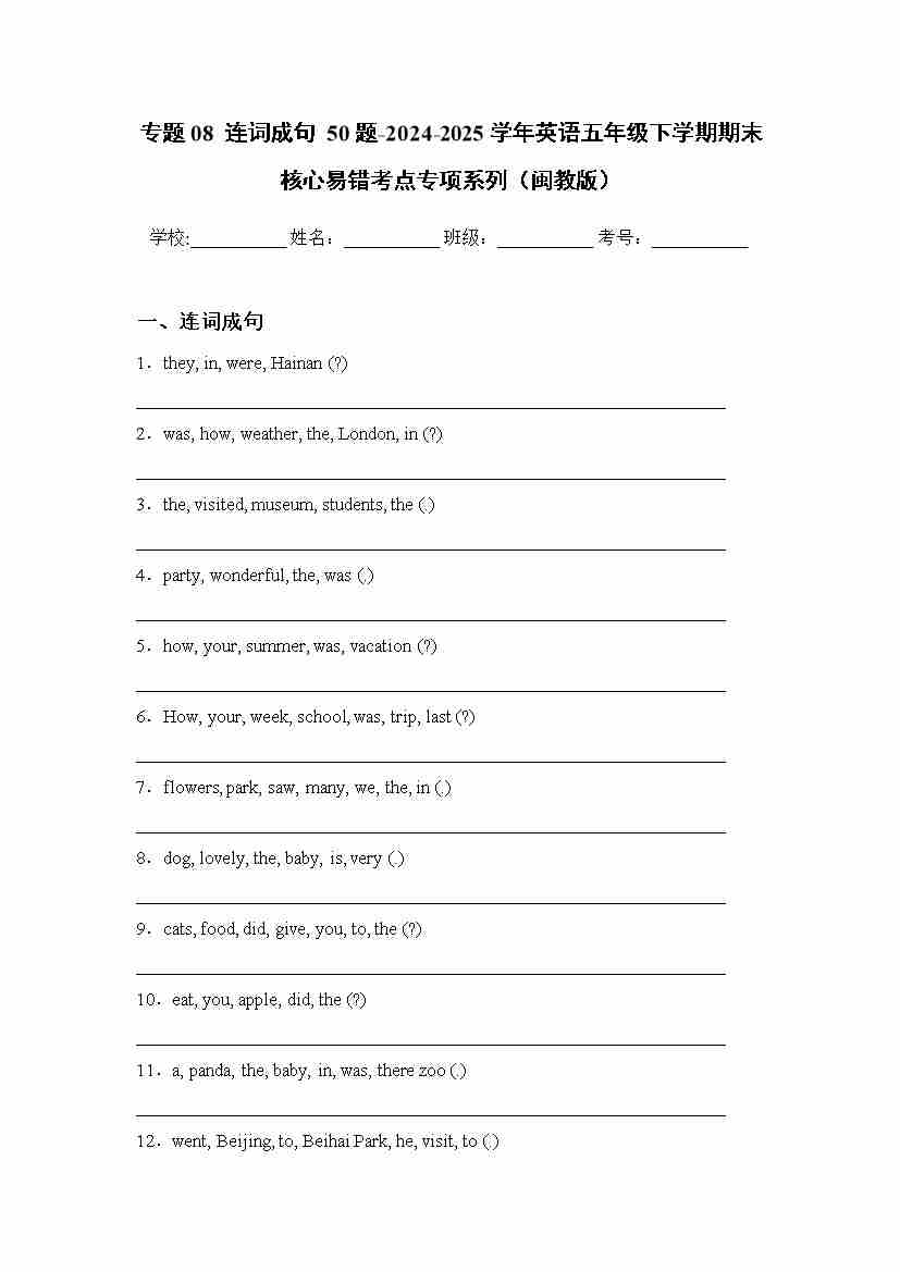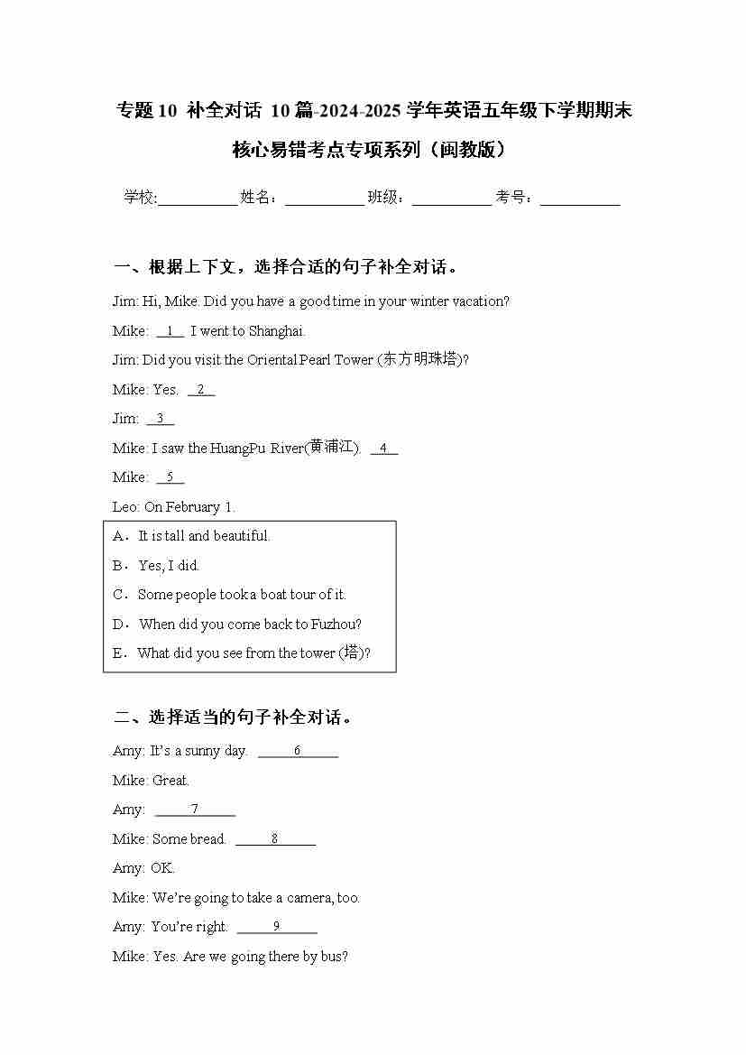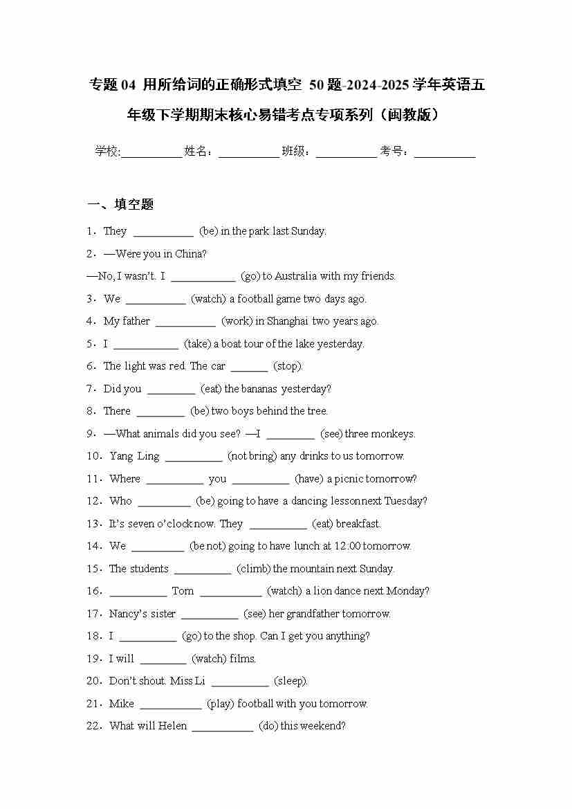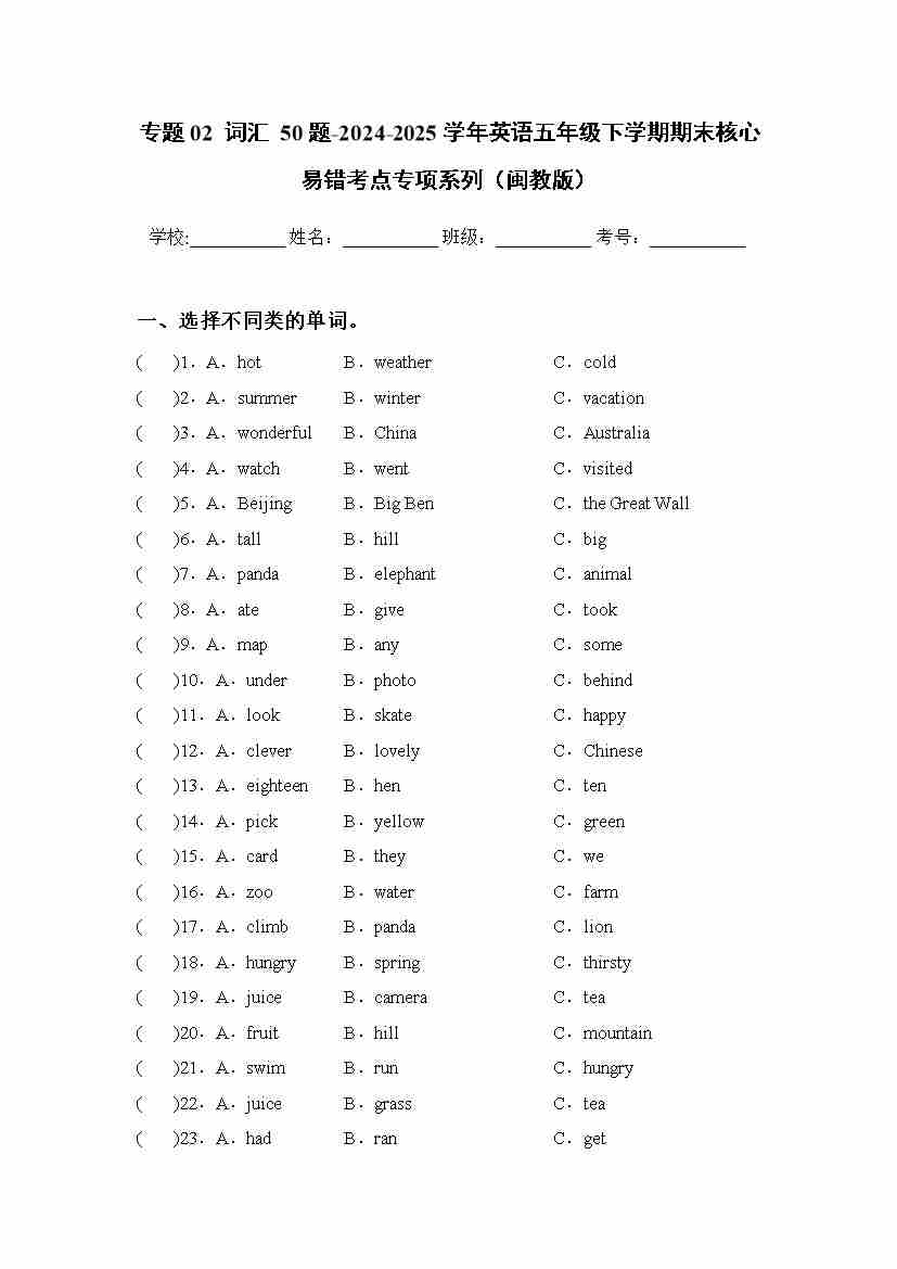 闽教版小学五年级下册英语期中试卷(听力音频)