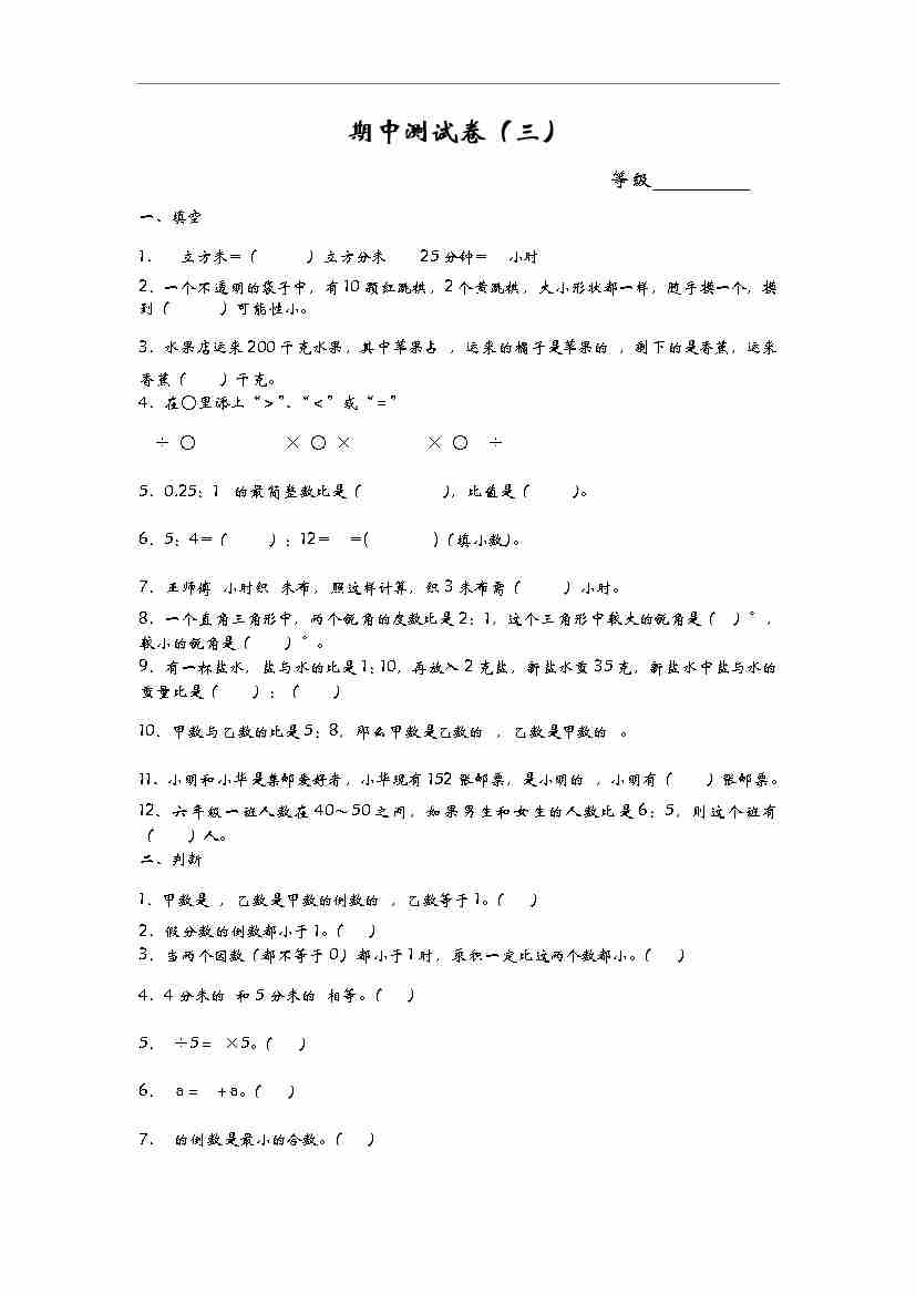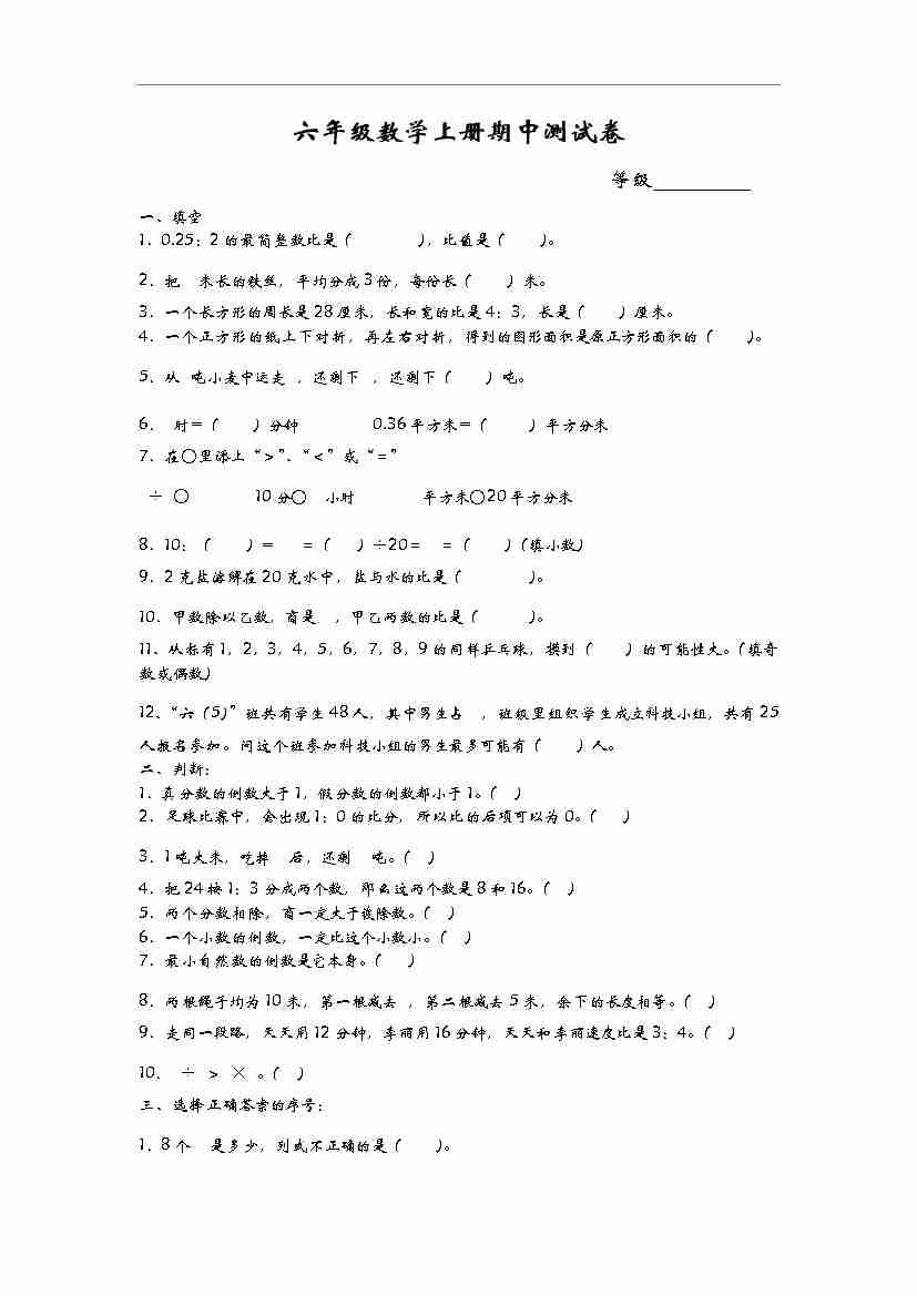 六年级(上)数学期中测试卷2答案《青岛63版》