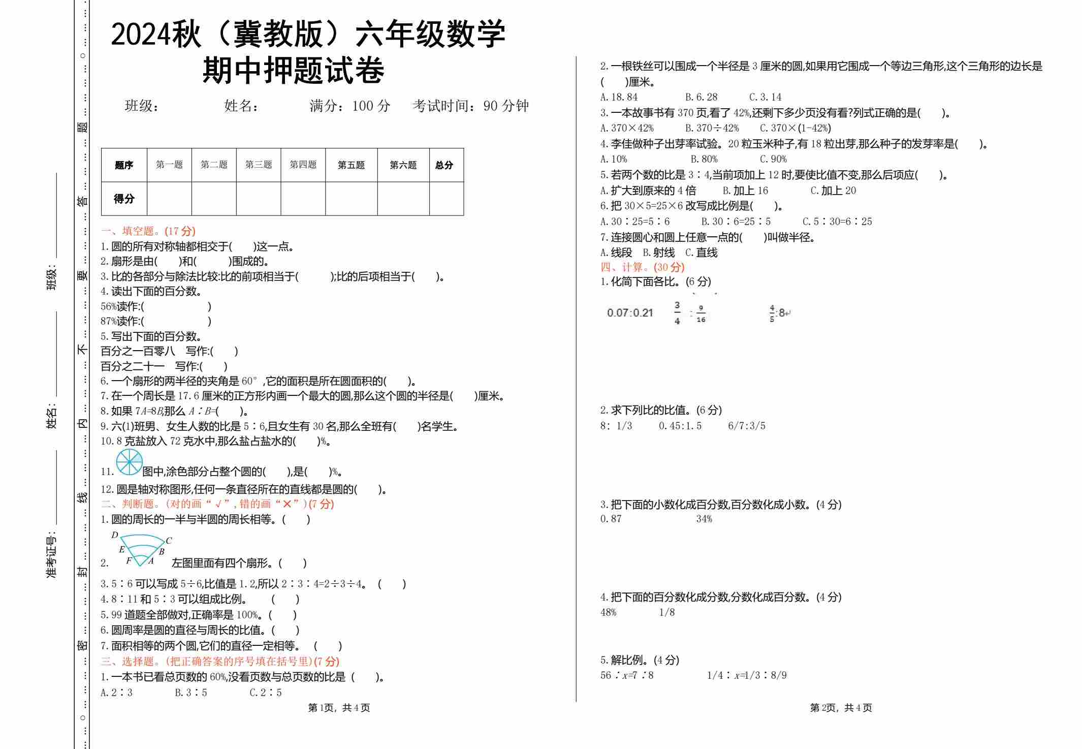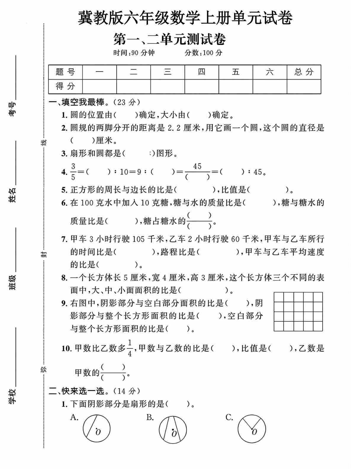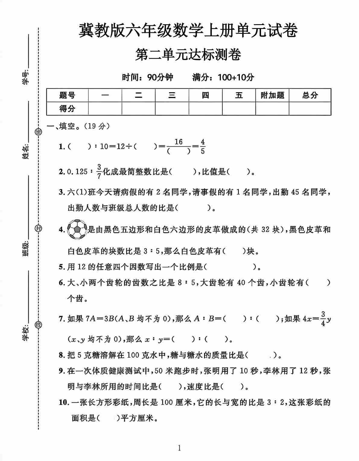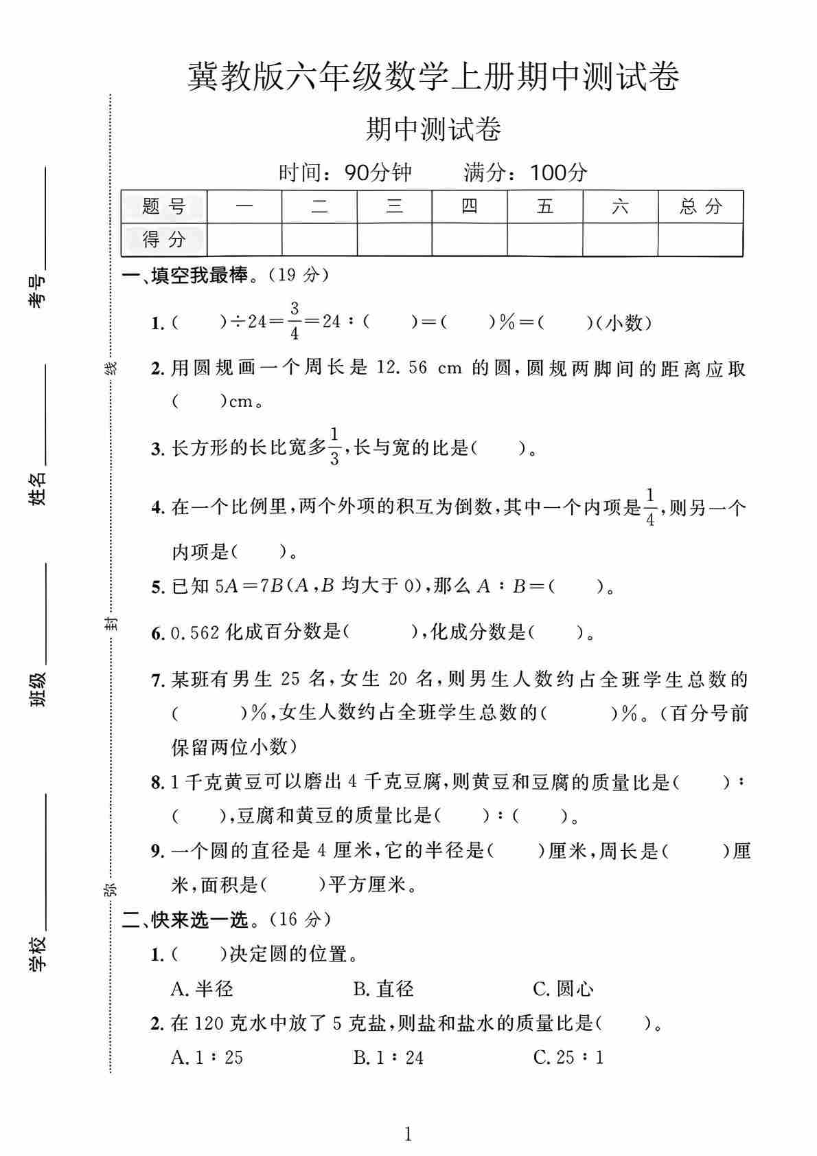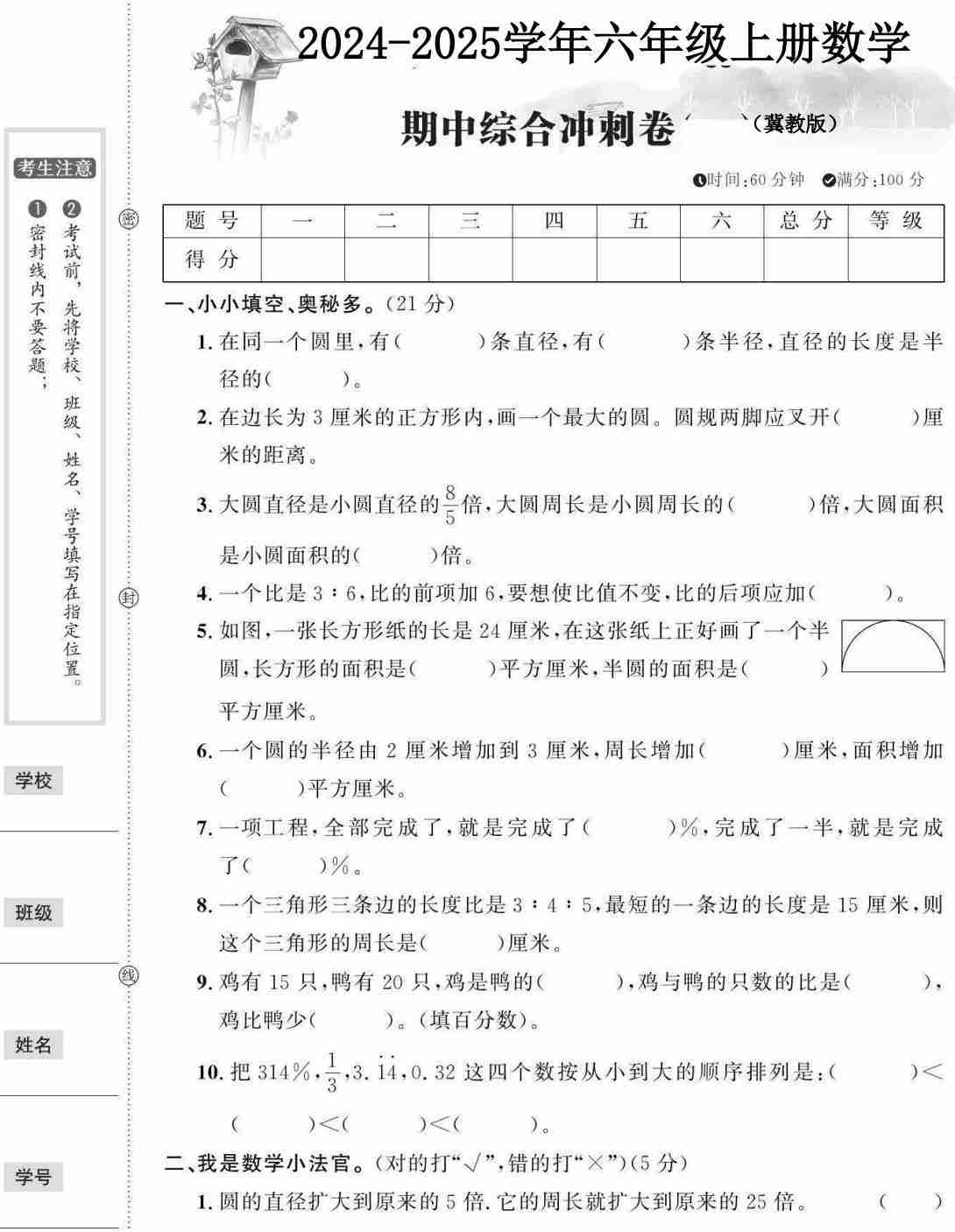 六上冀教版数学【2025秋-典中点-极速提分法】