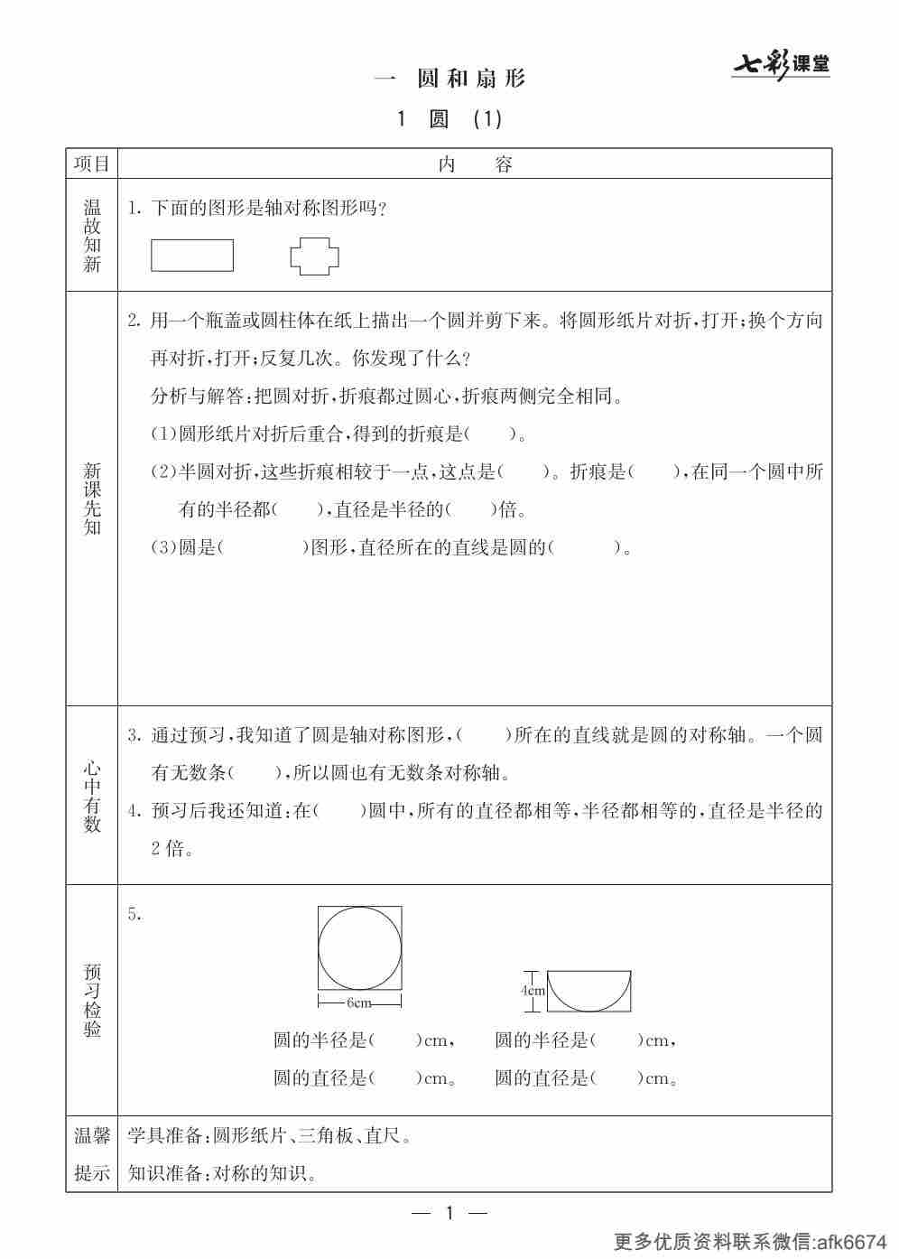 六(上)数学七彩课堂预习卡课课练-冀教版