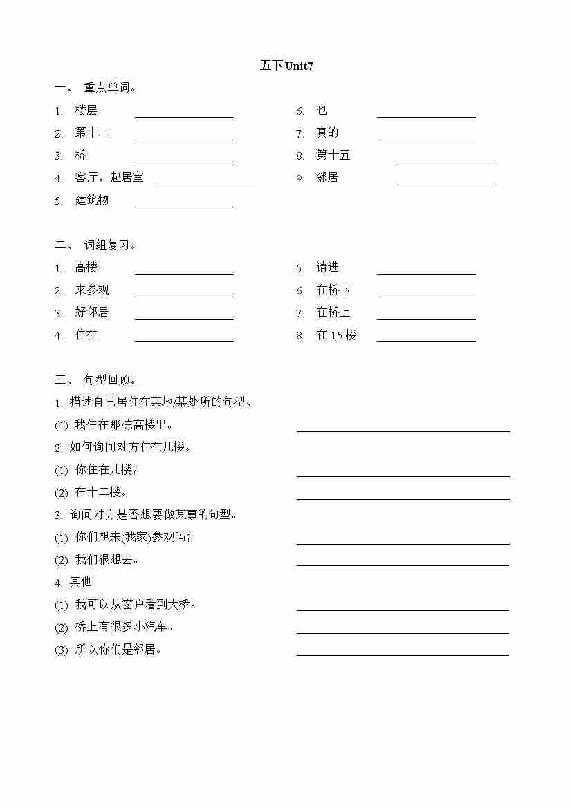 Unit 7 Tall Buildings(单元卷)闽教版英语五级下册
