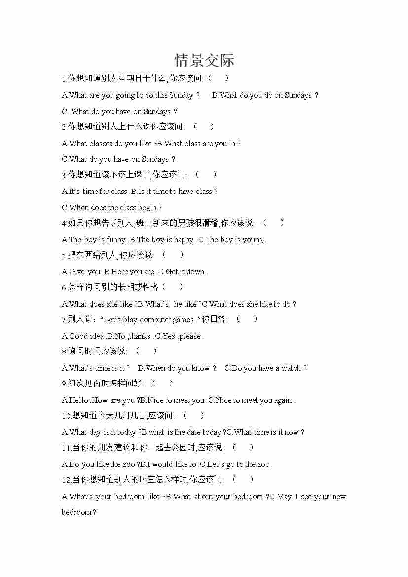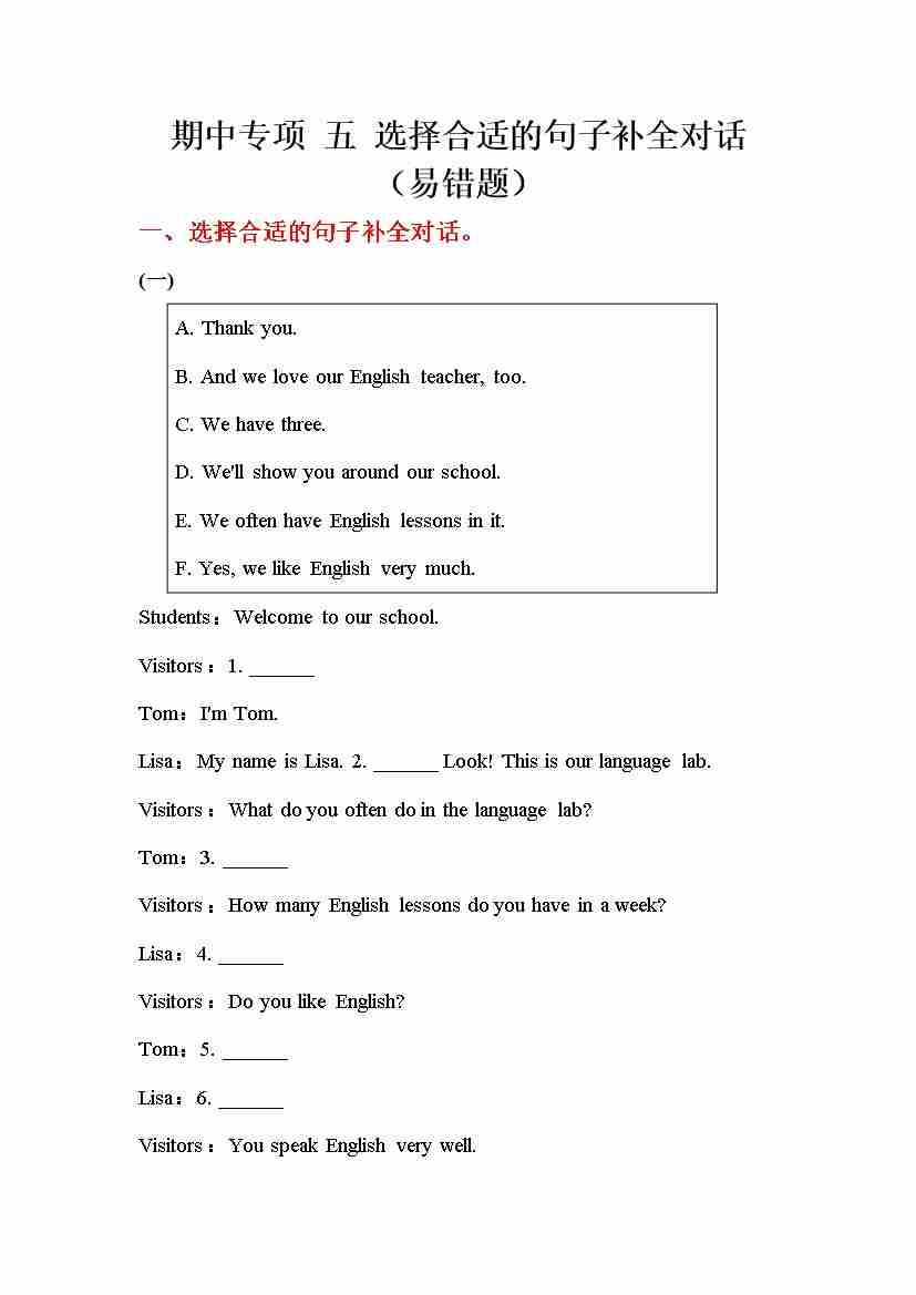 易错题专项期中专项五选择合适的句子补全对话五年级英语下册人教精通版(三起)含答案