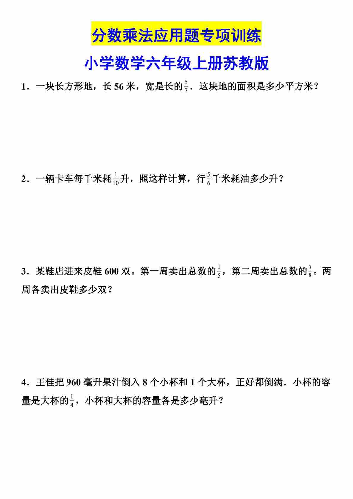 六上苏教版数学【分数乘法(专项突破)(含解析)】