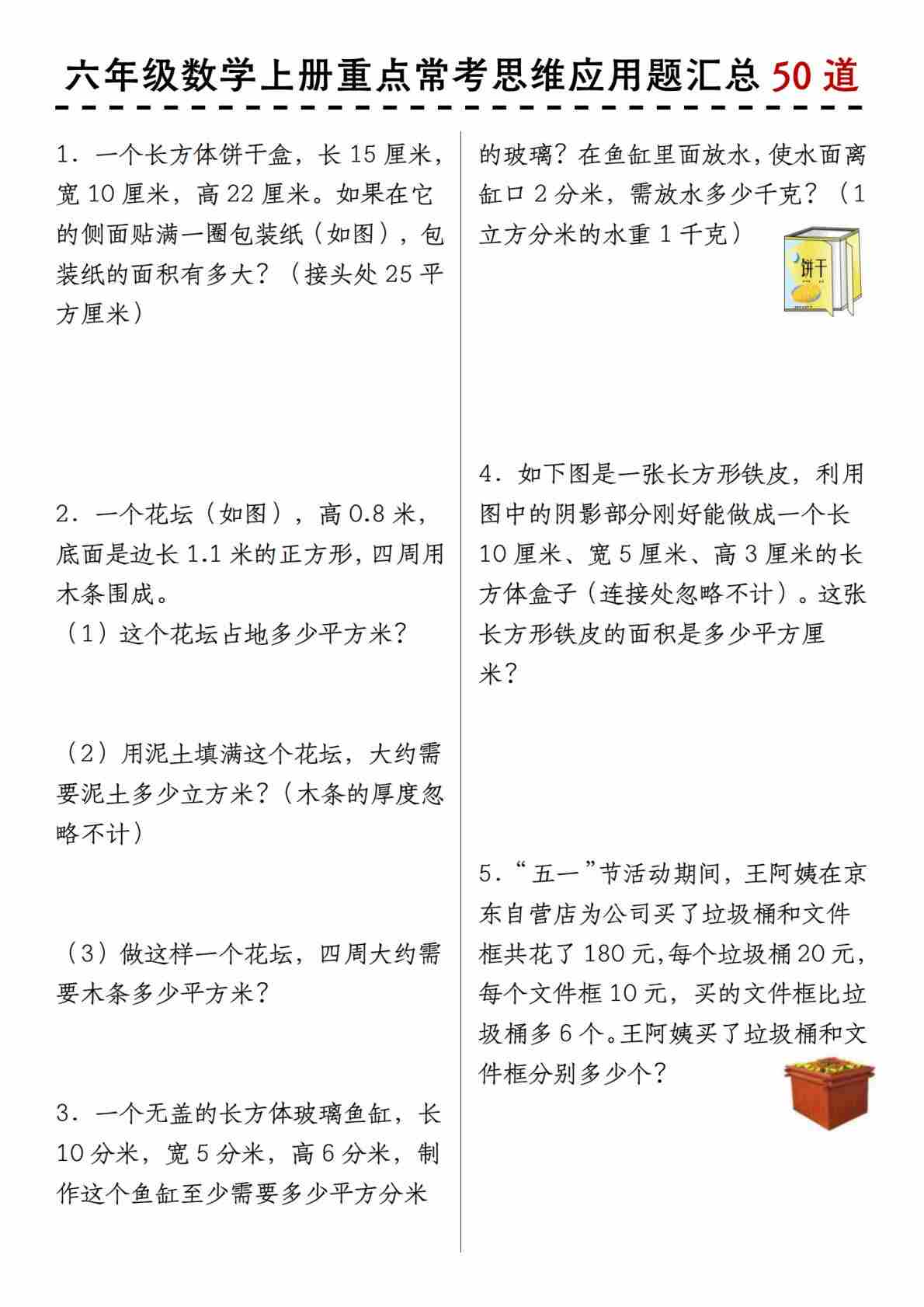 六上苏教版数学【重点常考思维应用题汇总50道】