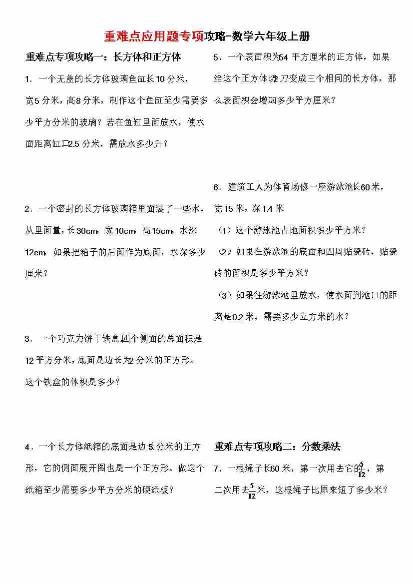 六上苏教版数学【重难点应用题专项攻略(含答案)】
