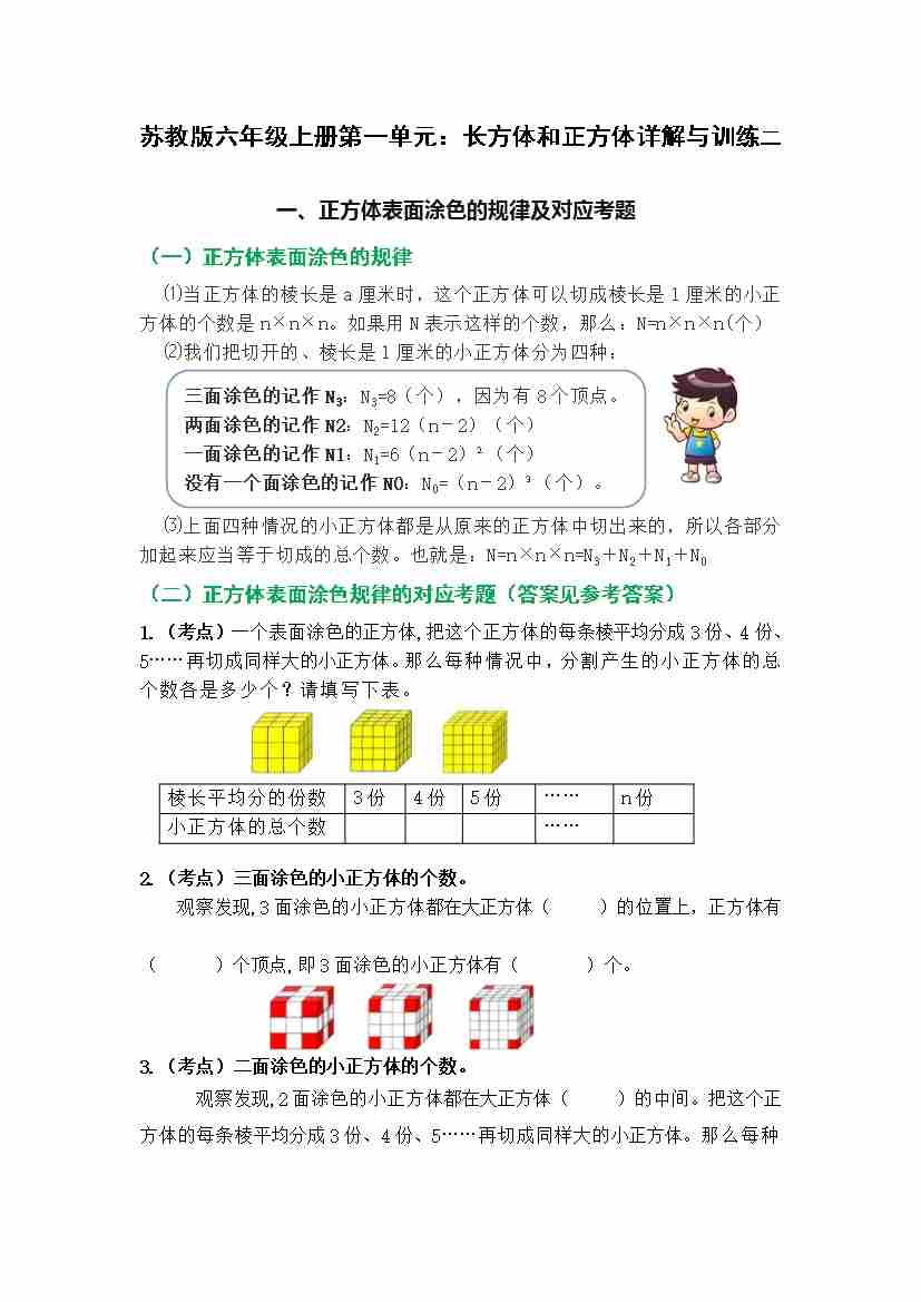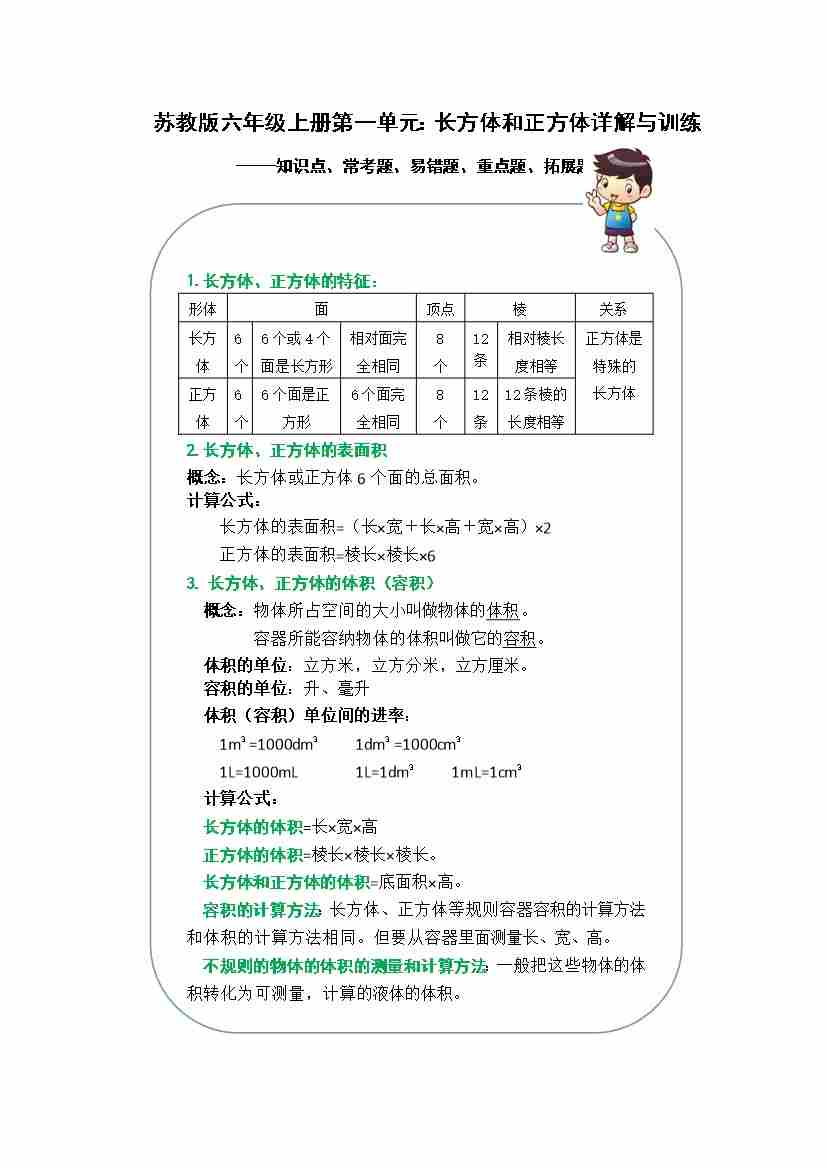 (学霸自主提优拔尖)苏教版六年级数学上册第一单元长方体和正方体(知识点、常考题、易错题、拓展题)名师详解与训练一