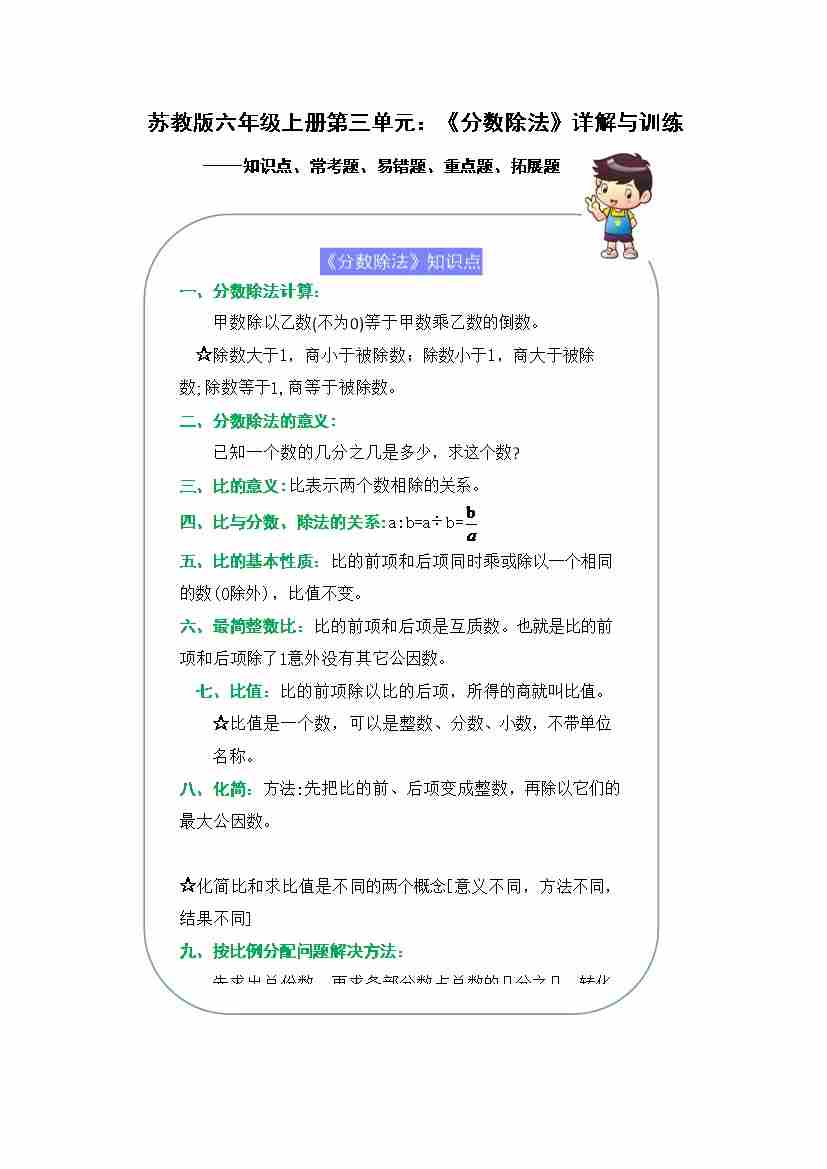(学霸自主提优拔尖)苏教版六年级数学上册第三单元《分数除法》(知识点、常考题、易错题、拓展题)名师详解与训练