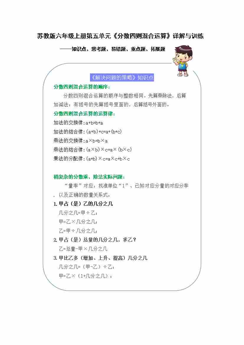 (学霸自主提优拔尖)苏教版六年级数学上册第五单元《分数四则混合运算》(知识点、常考题、易错题、拓展题)名师详解与训练