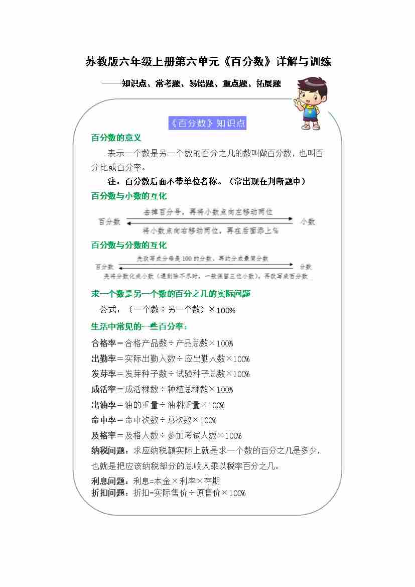 (学霸自主提优拔尖)苏教版六年级数学上册第六单元《百分数》(知识点、常考题、易错题、拓展题)名师详解与训练
