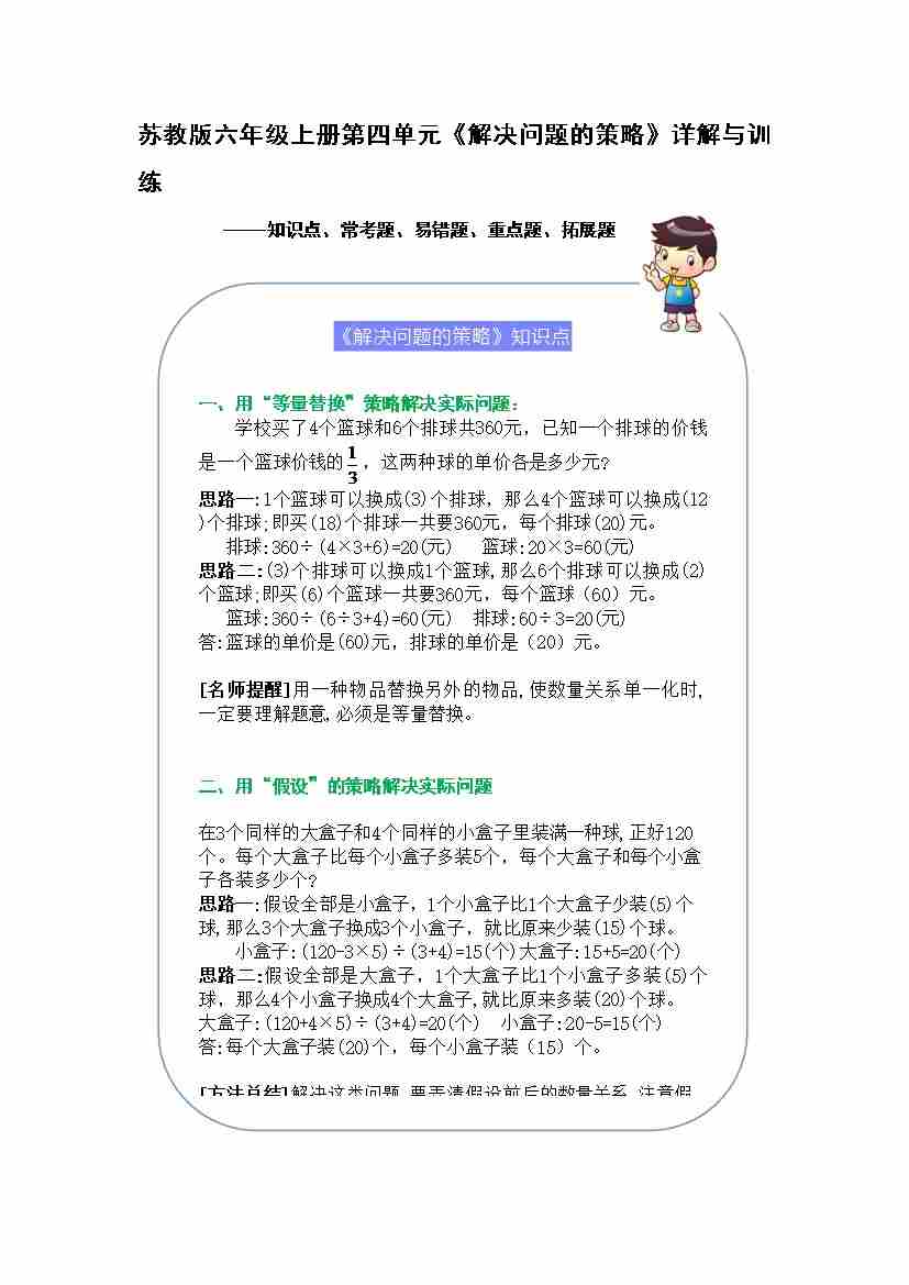 (学霸自主提优拔尖)苏教版六年级数学上册第四单元《解决问题的策略》(知识点、常考题、易错题、拓展题)名师详解与训练