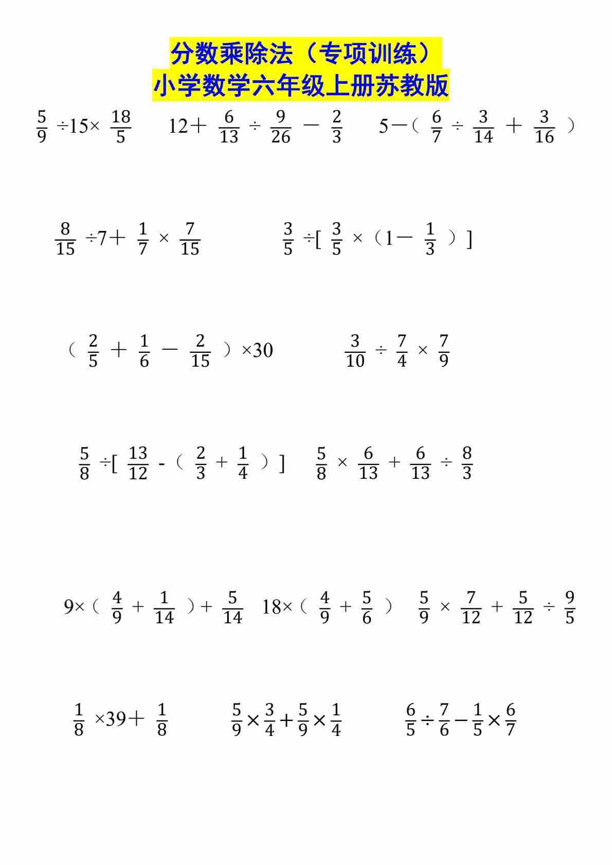 六上苏教版数学【分数乘除法(专项训练)】
