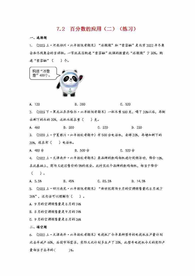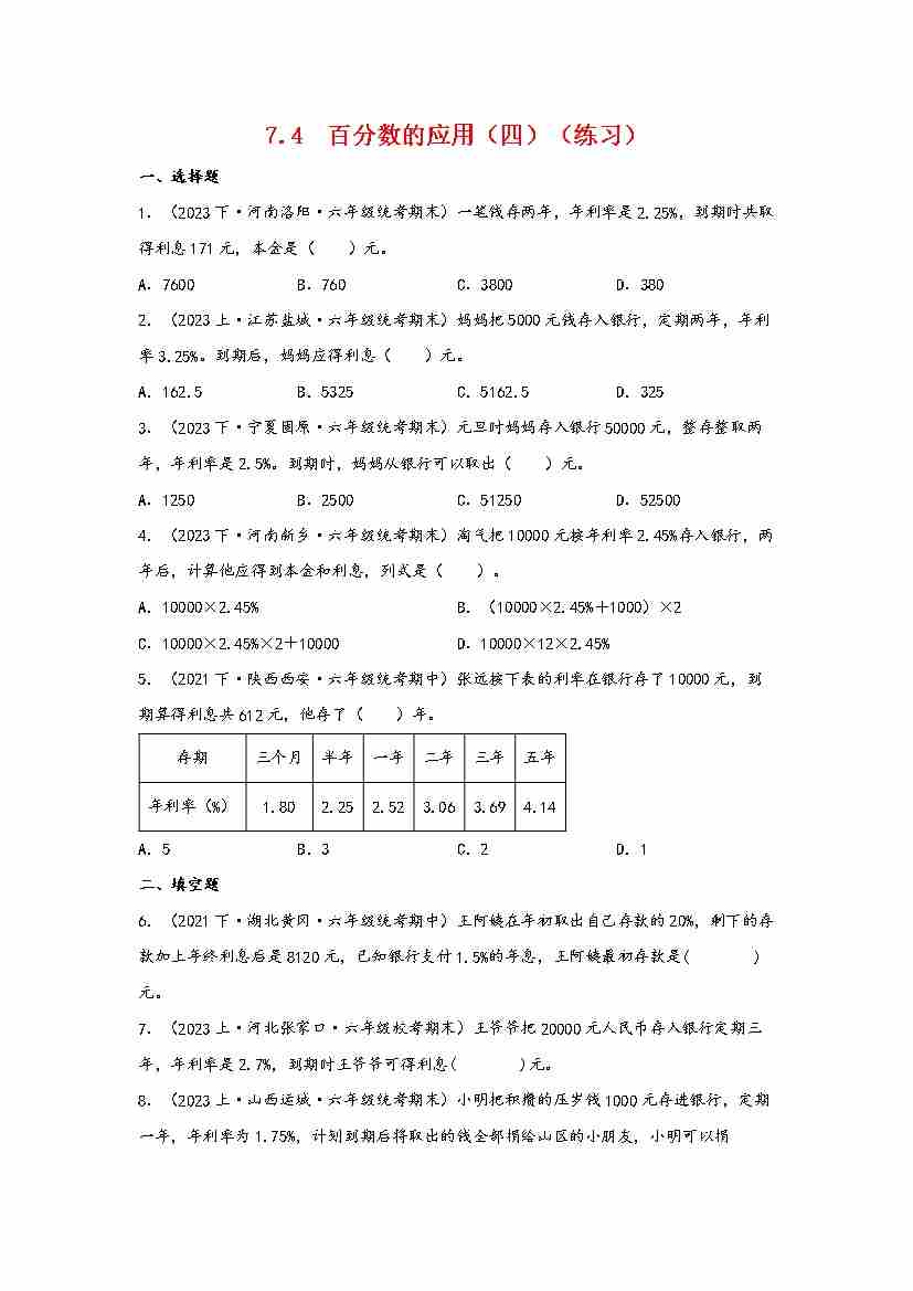 六上苏教版数学【期末分类复习专题(10)-高级利息、税率、折扣及成数解决问题】