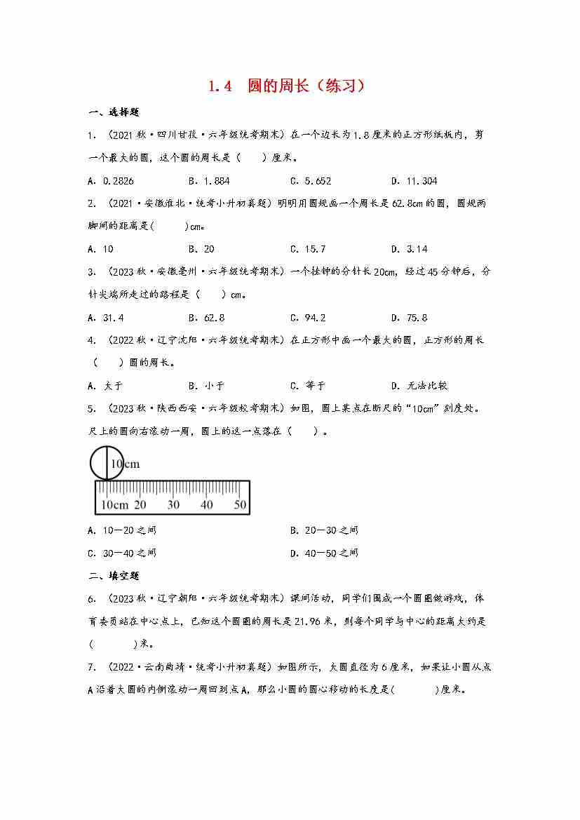 1.4 圆的周长(分层作业)