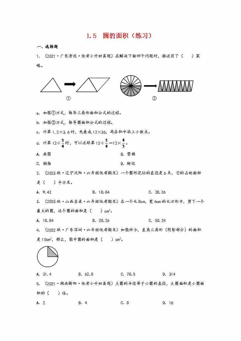 1.5 圆的面积(分层作业)