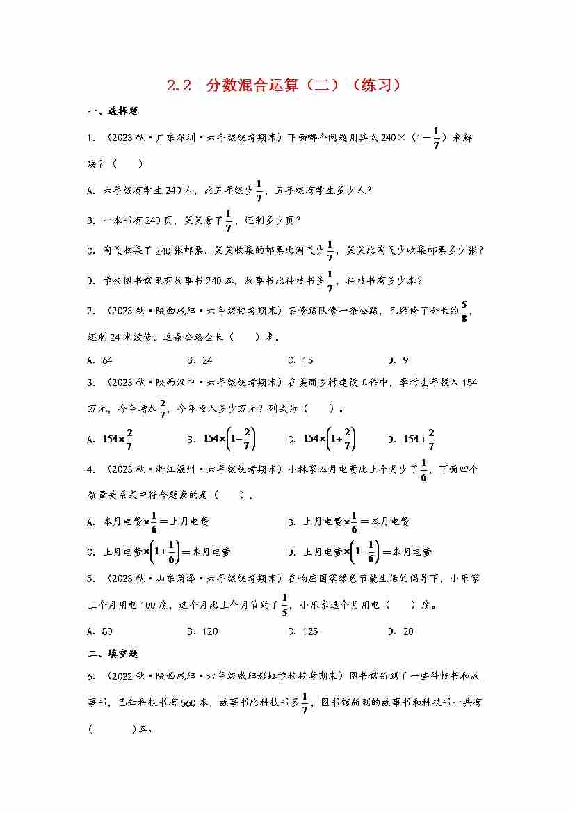 2.2 分数混合运算(二)(分层作业)
