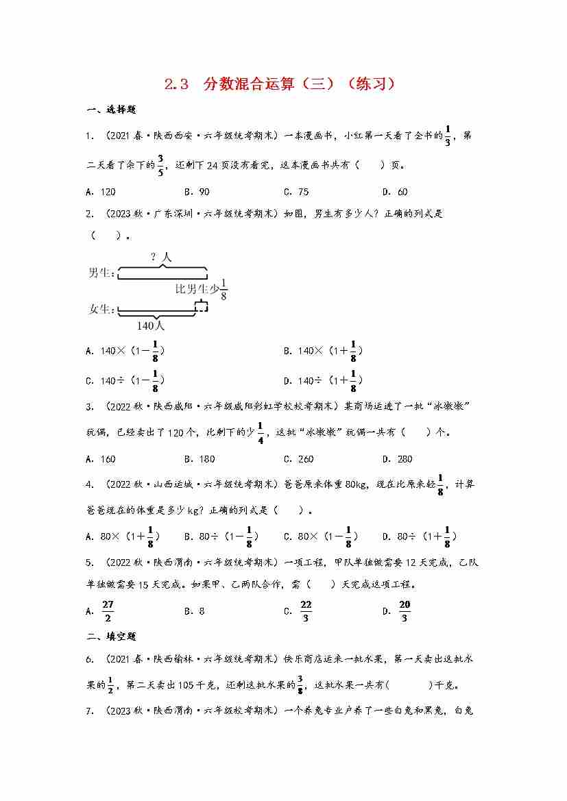 2.3 分数混合运算(三)(分层作业)