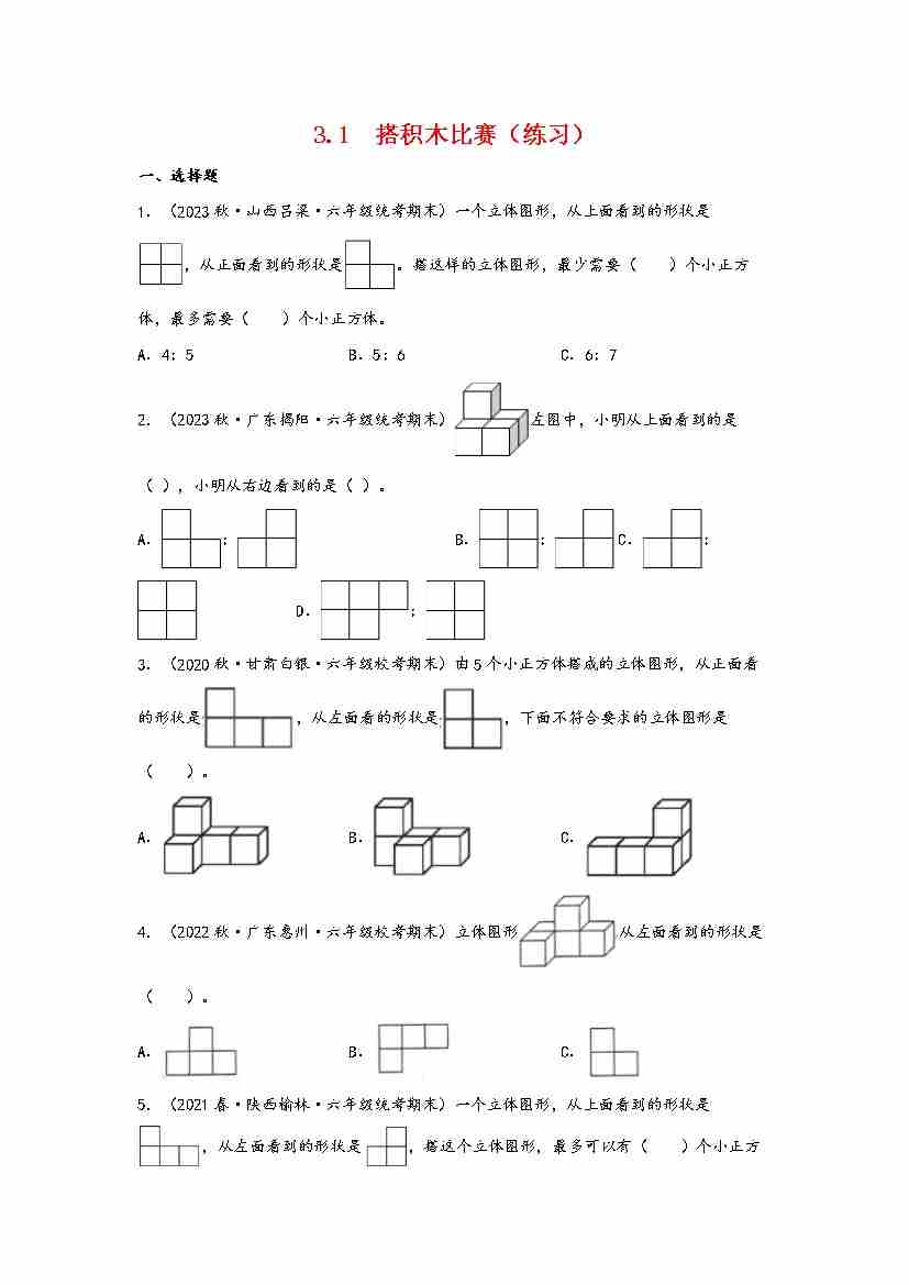 3.1 搭积木比赛(分层作业)