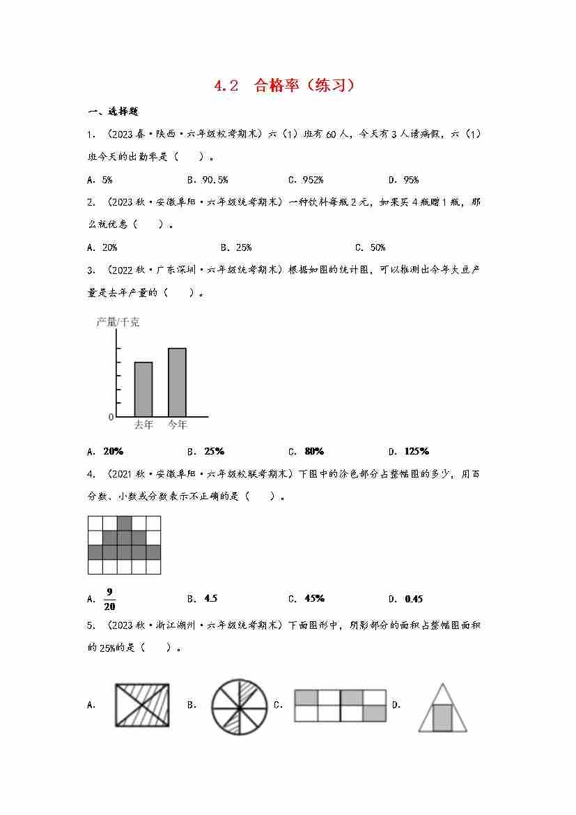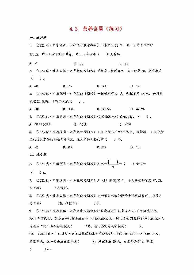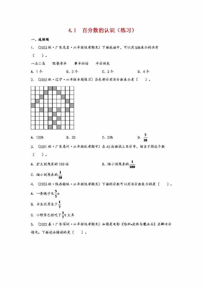 4.1 百分数的认识(分层作业)