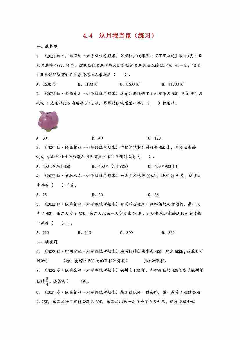 4.4 这月我当家(分层作业)