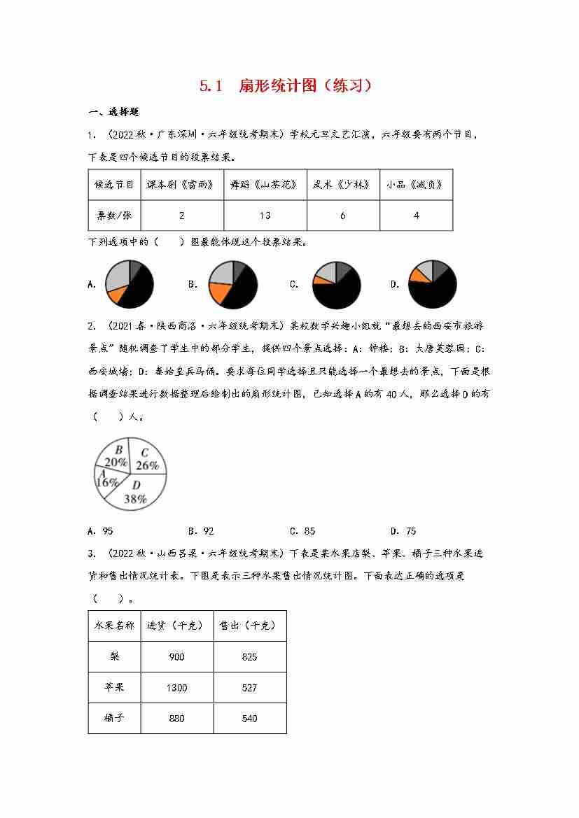 5.1 扇形统计图(分层作业)