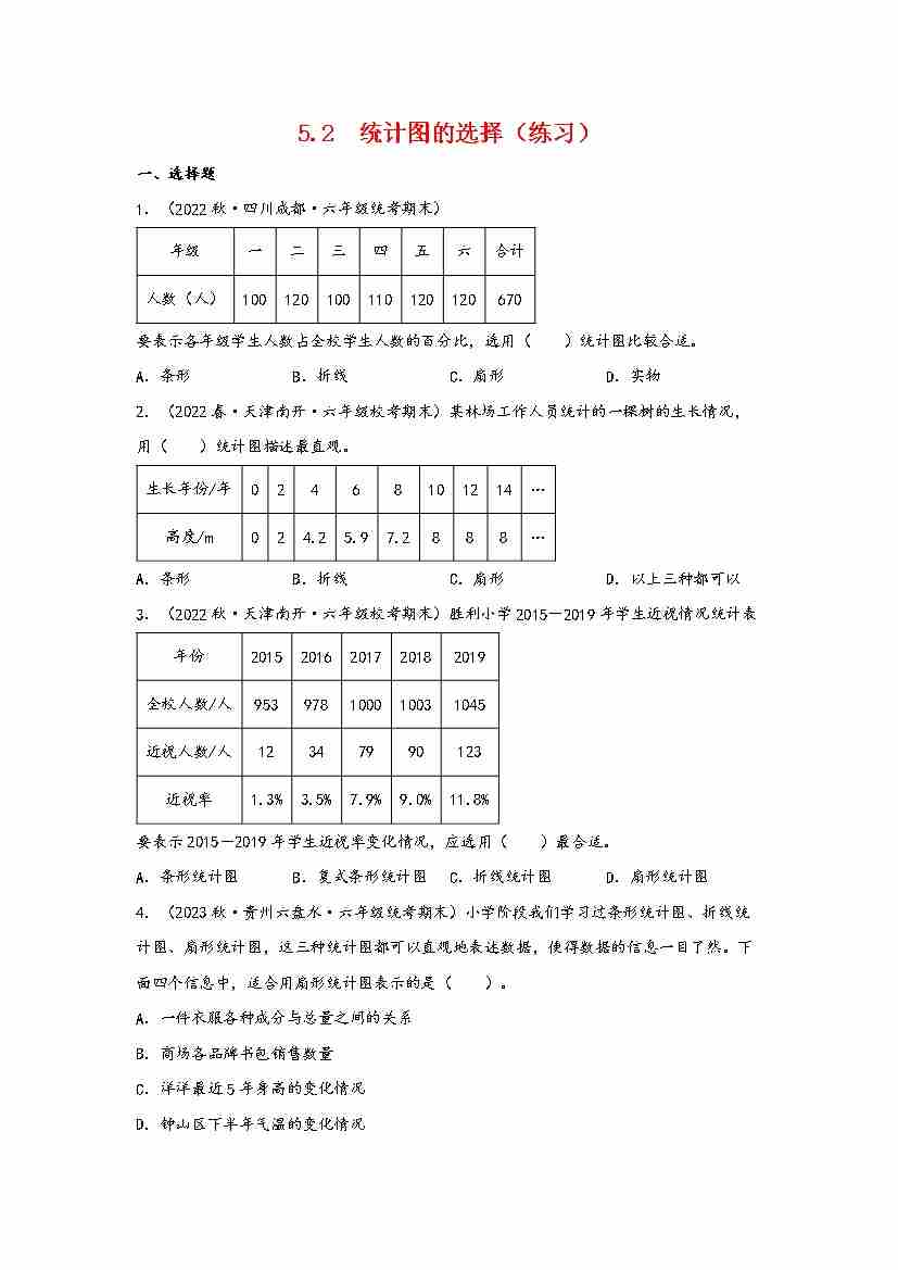 5.2 统计图的选择(分层作业)