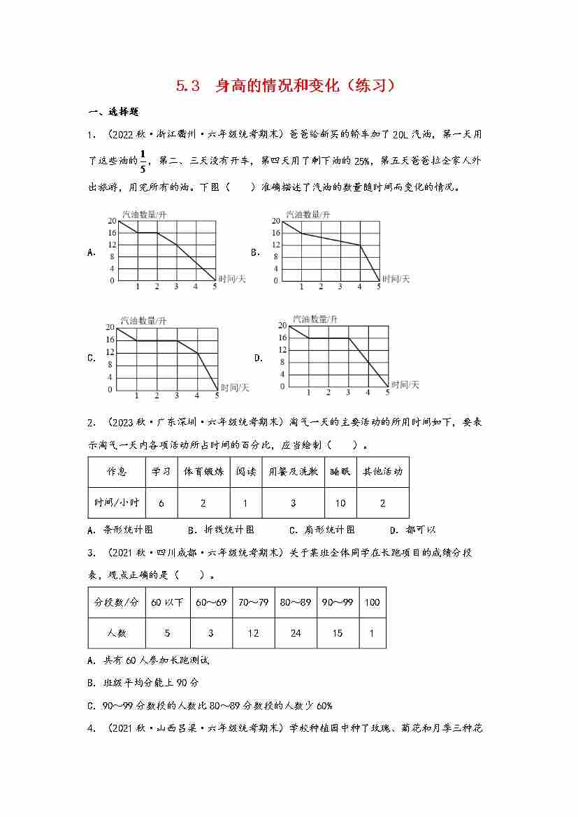 5.3 身高的情况和变化(分层作业)