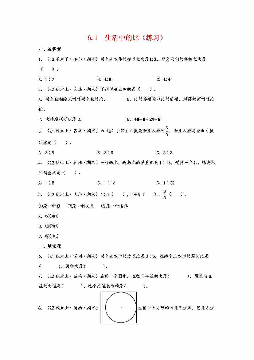 6.1 生活中的比(分层作业)