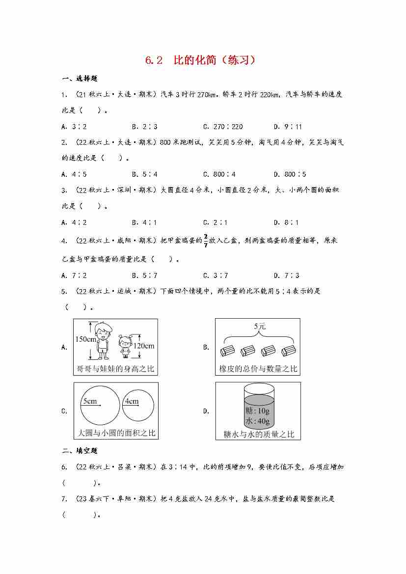 6.2 比的化简(分层作业)