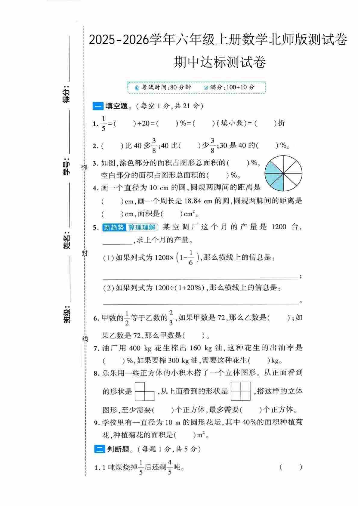 【易错考点精讲】 01 圆(知识回顾+夯实基础练)六年级上册数学单元考点精讲+优选易错题 北师大版(含答案)