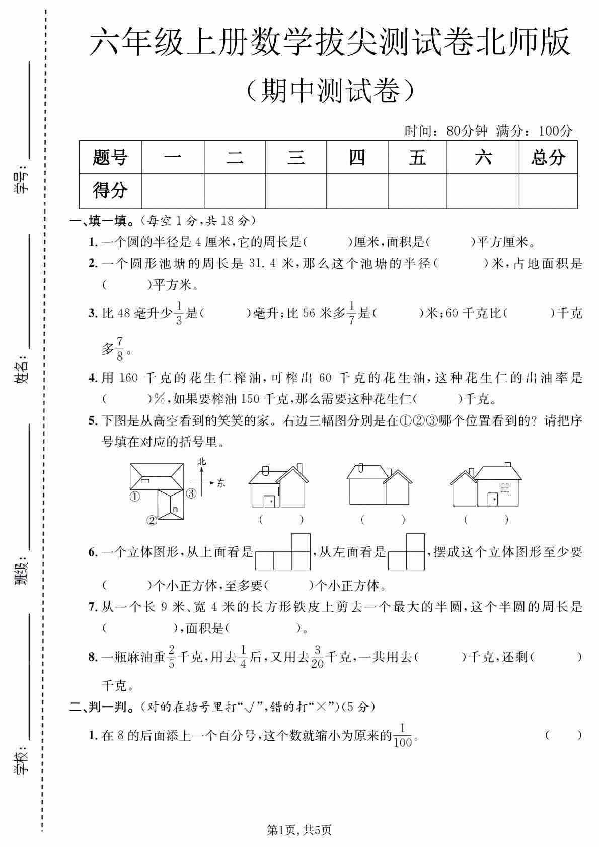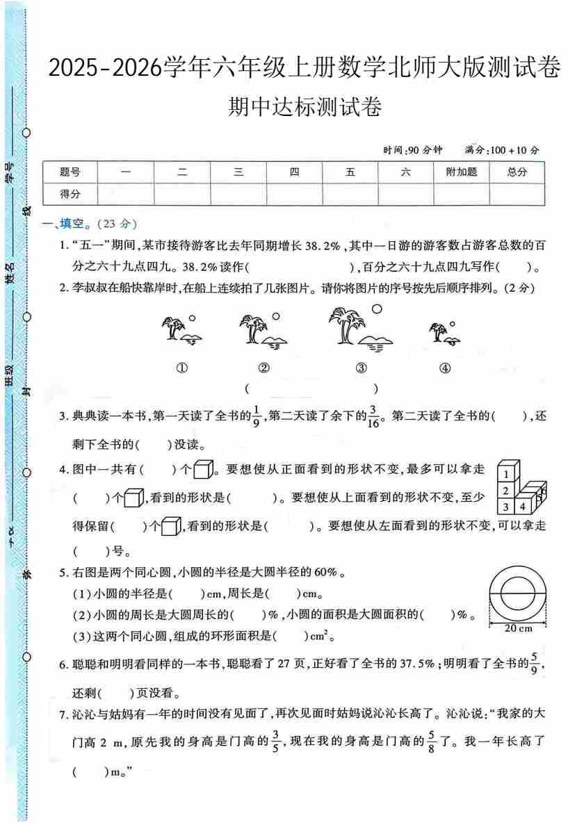 六上北师大版数学【期末应用题分类复习专题(一)(圆的周长和面积)】