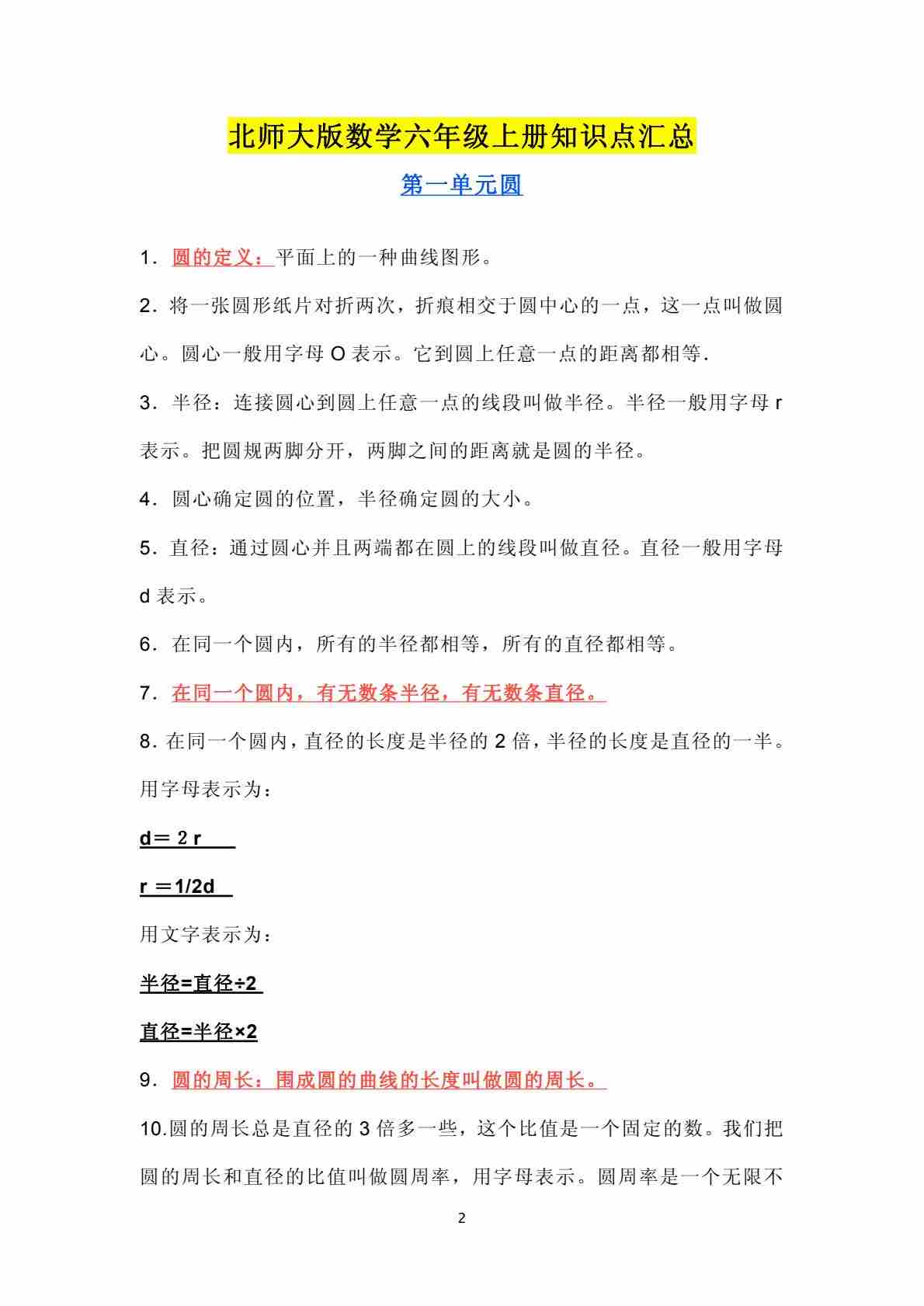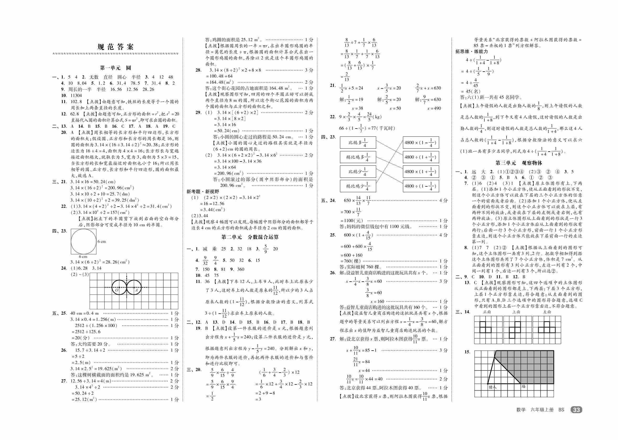 六(上)数学(北师大)试卷《全品小复习》答案详解