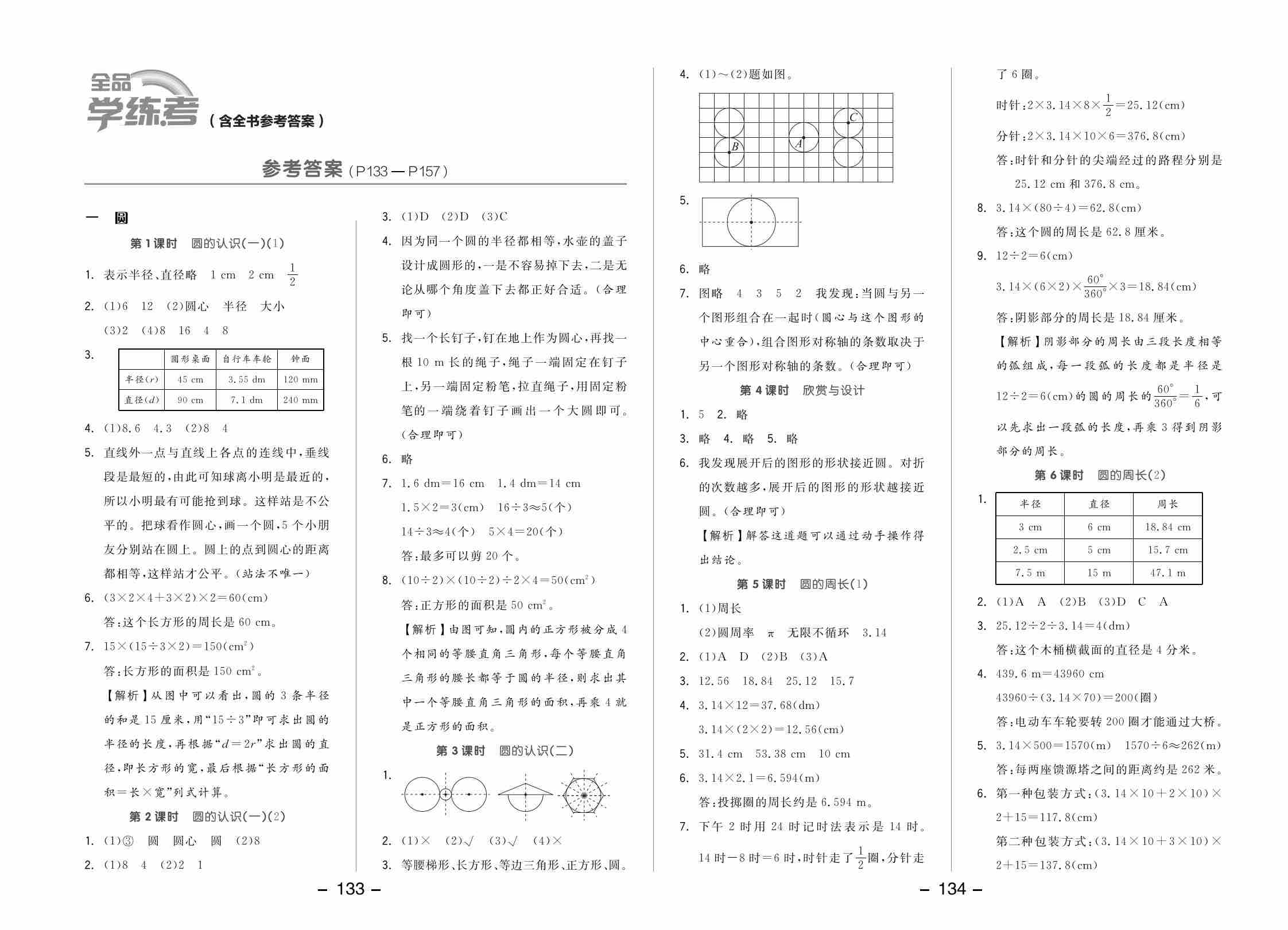 六(上)数学(北师大)课时《全品学练考》参考答案