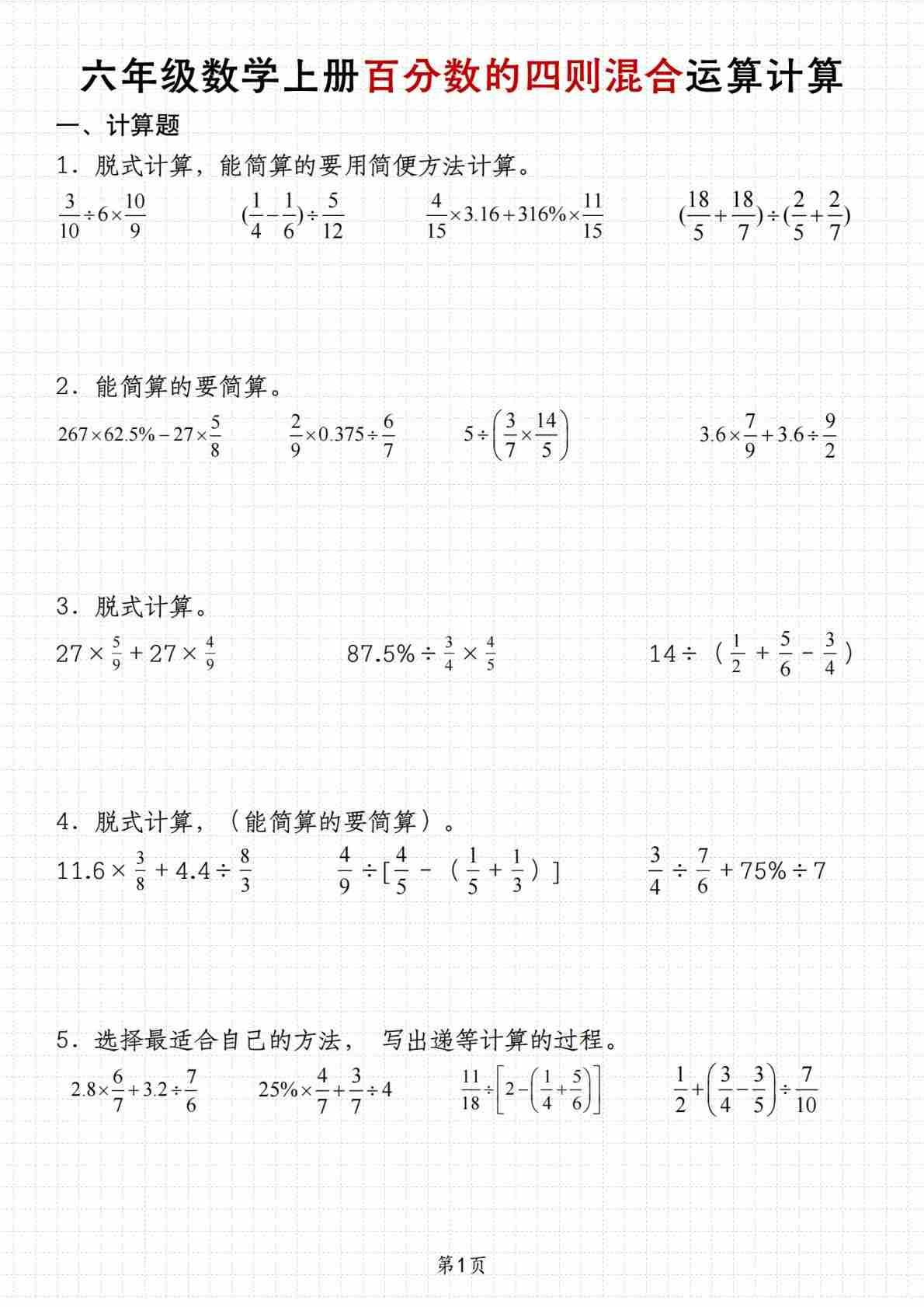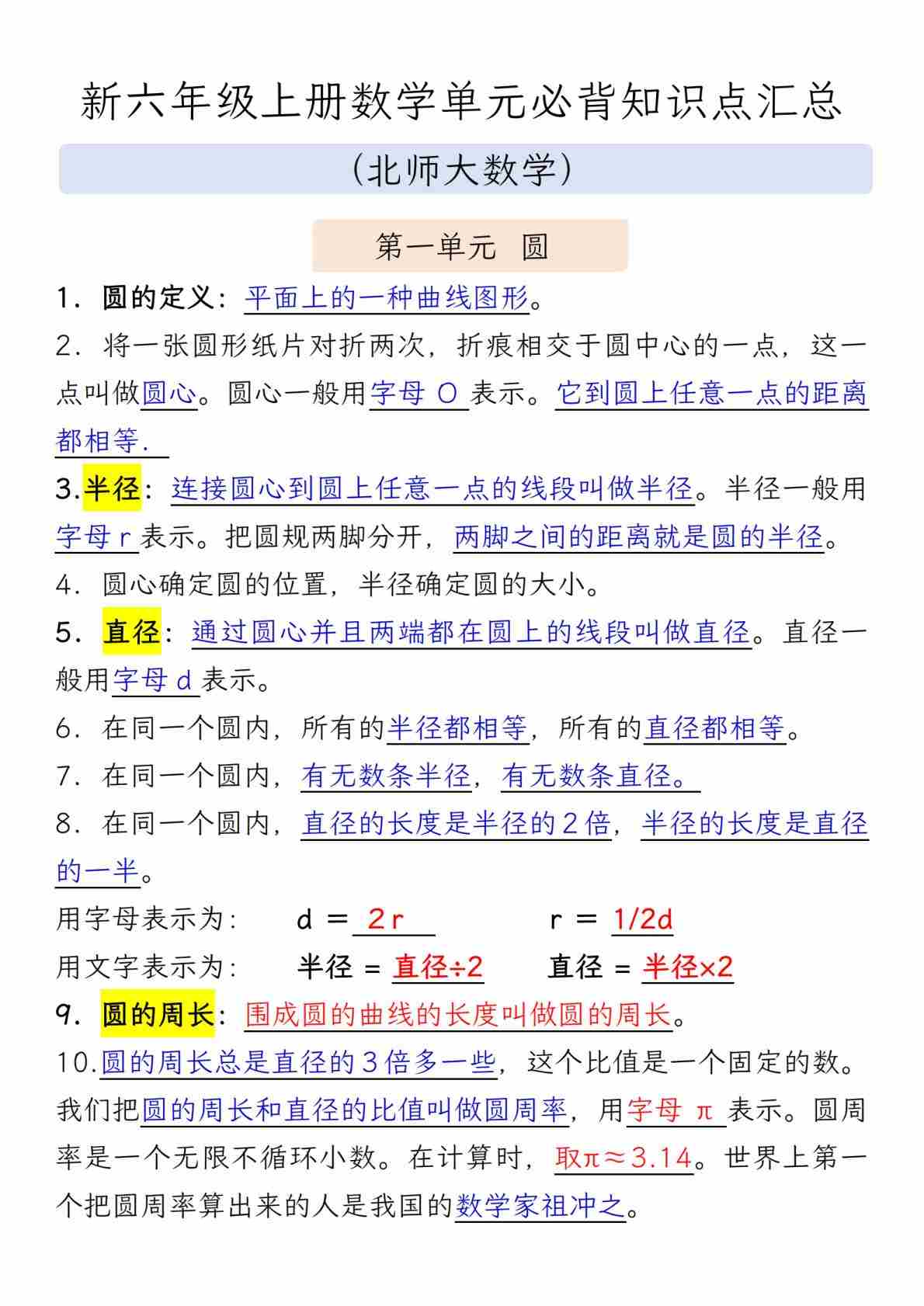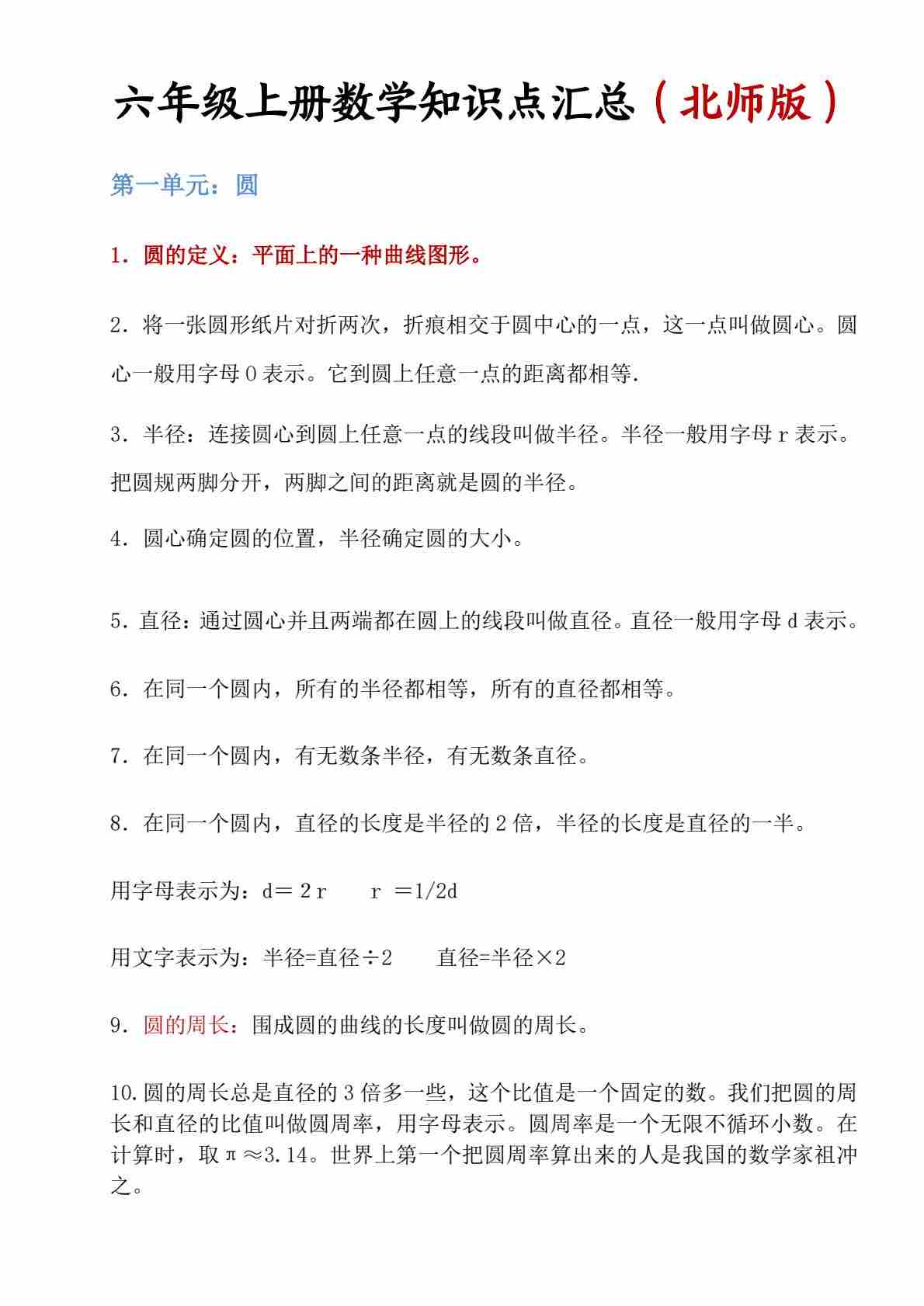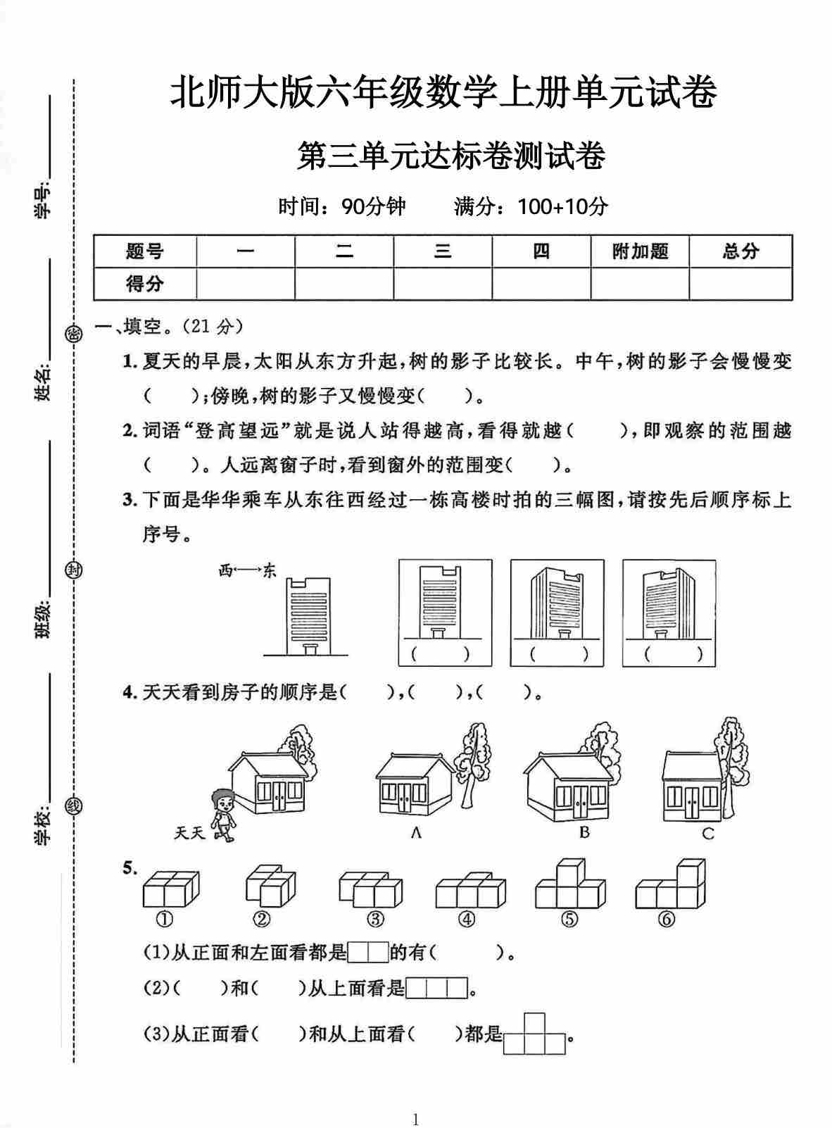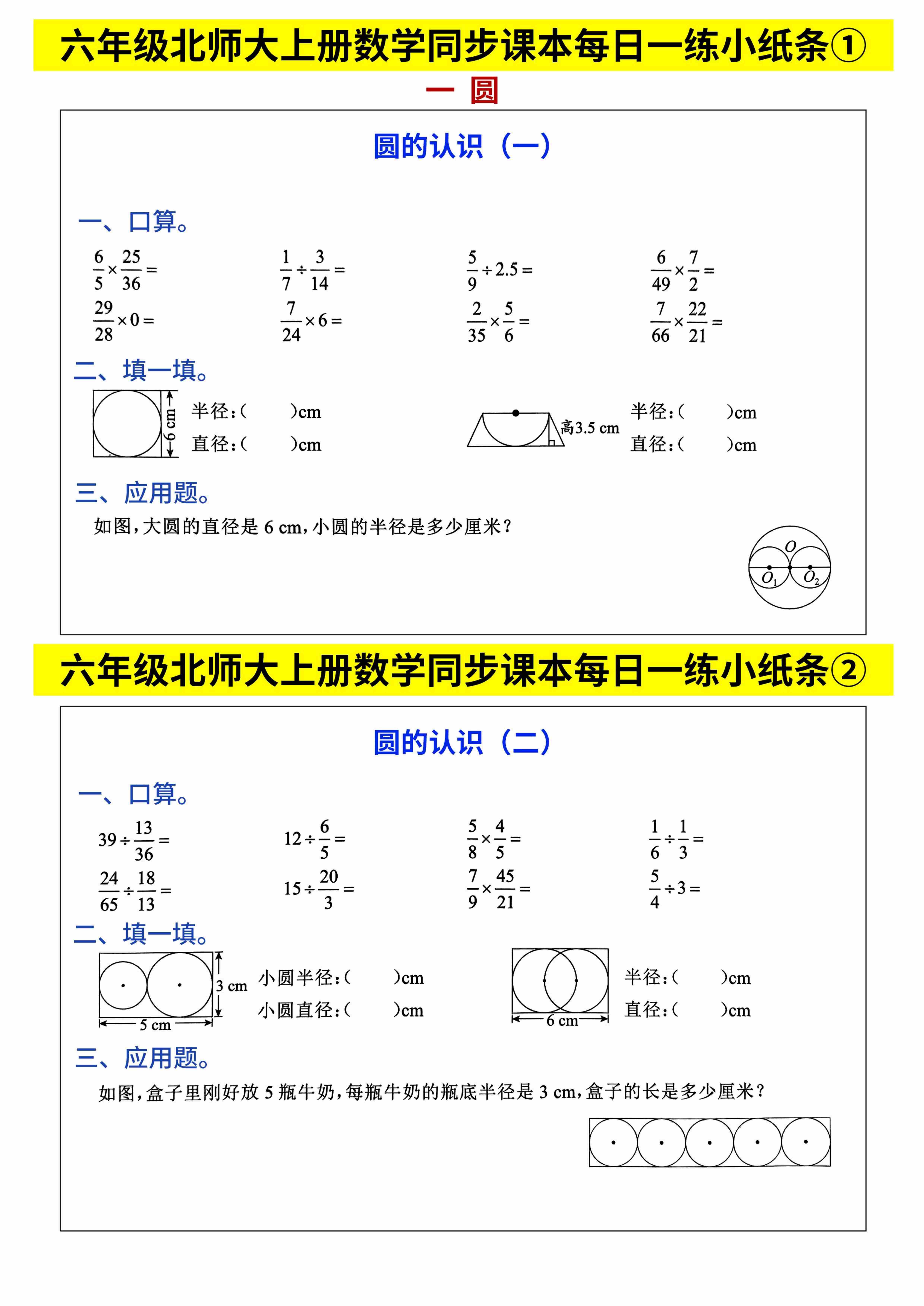 六上北师大版数学【国庆七天打卡(原卷版)】